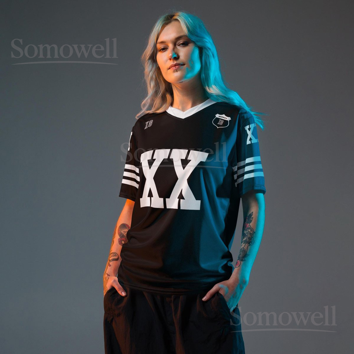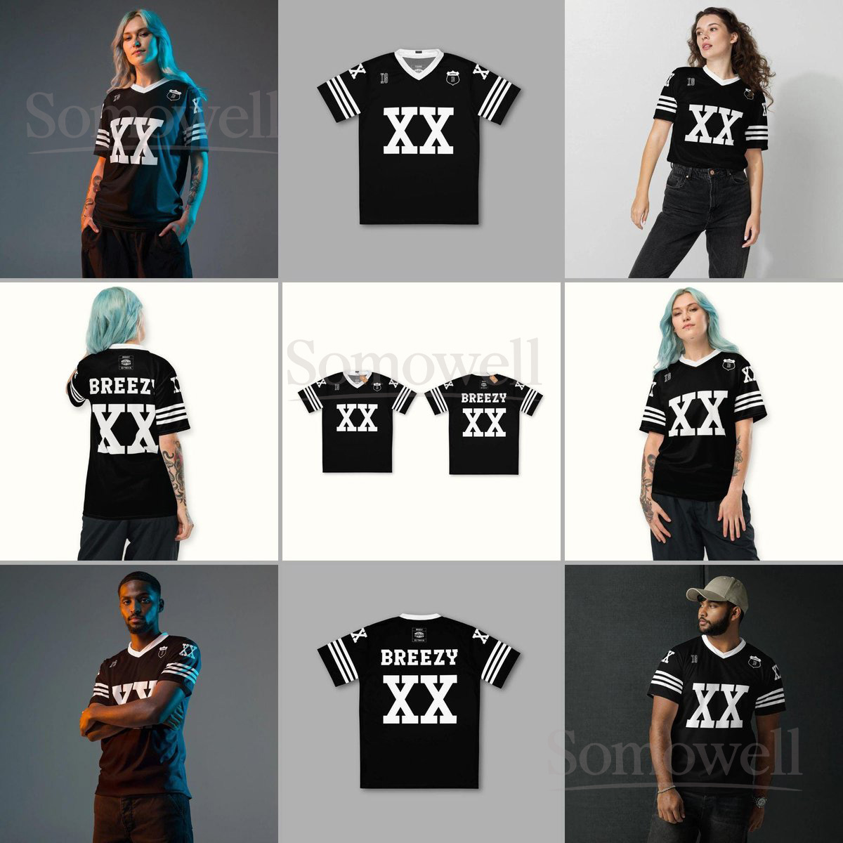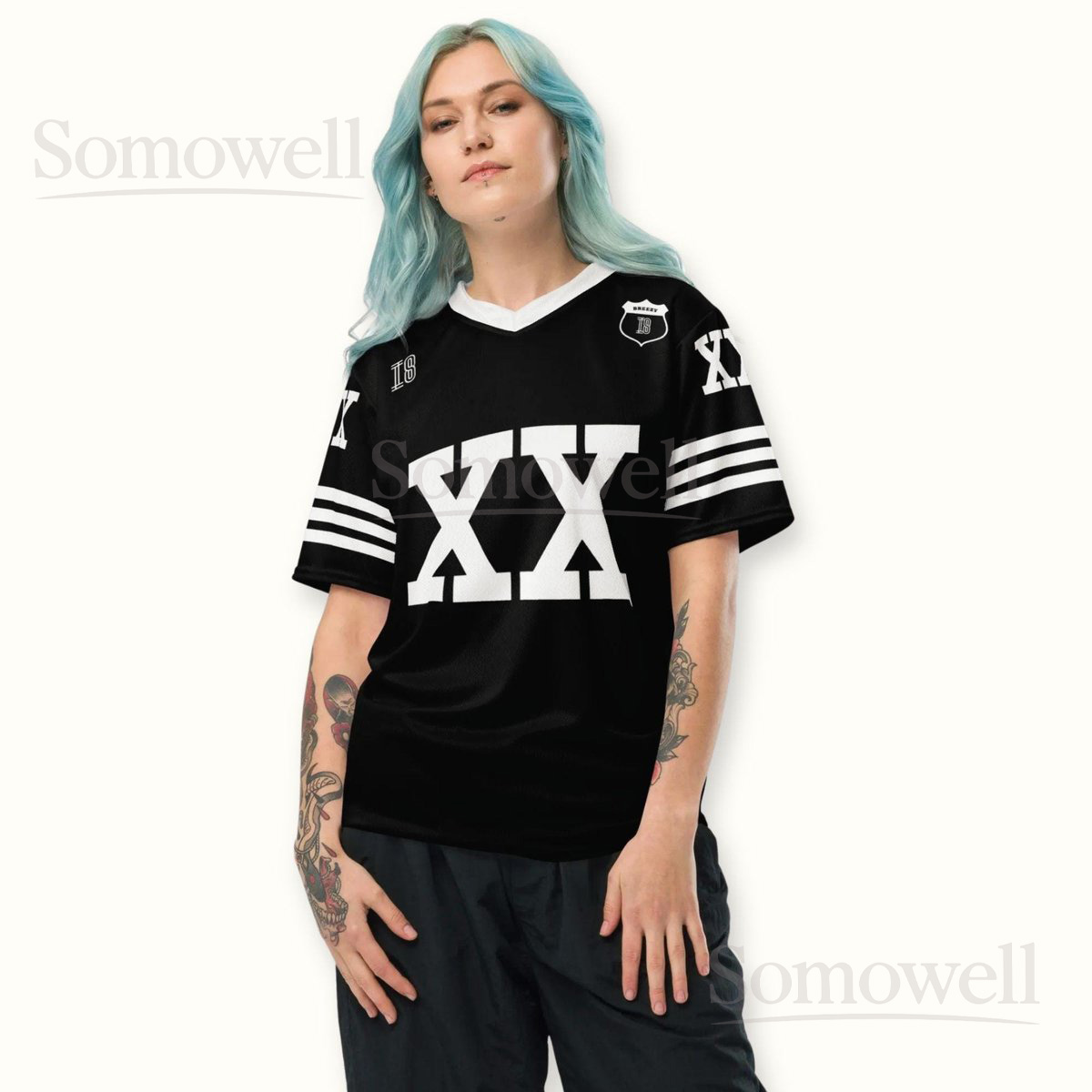 Custom Chris Brown Breezy Bowl Football Jersey Shirt for Music Fans Black and White XX Tour Concert Streetwear Outfit