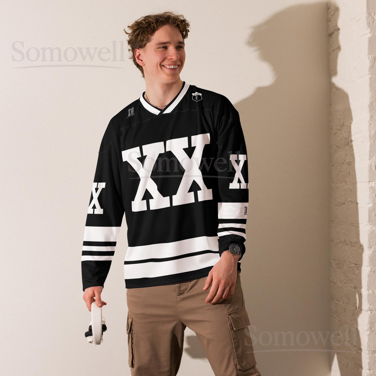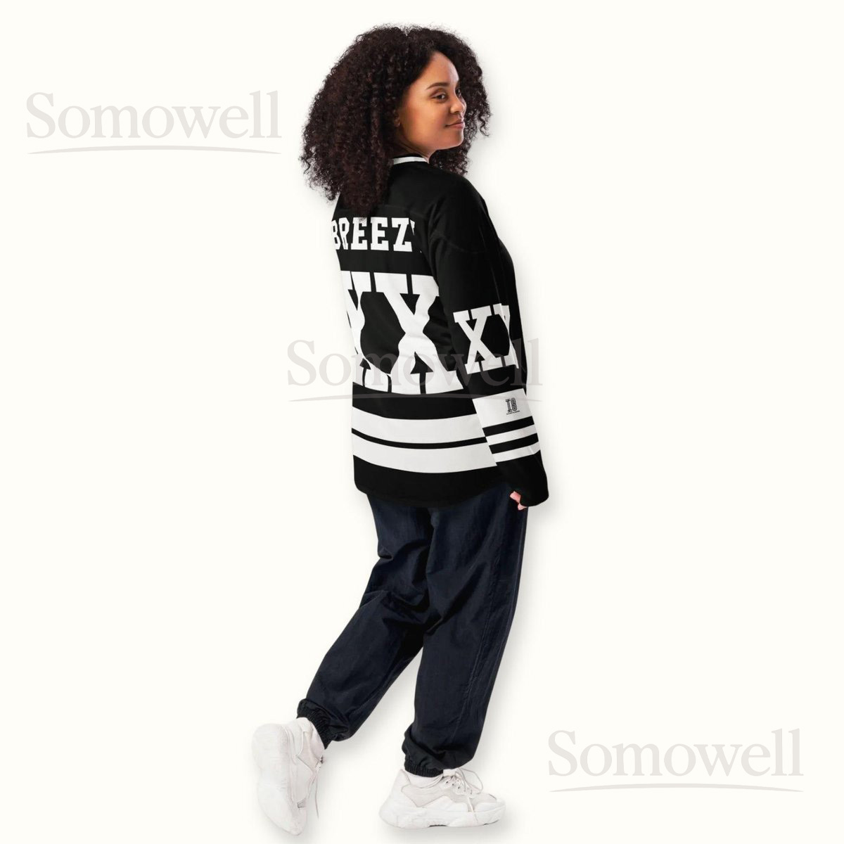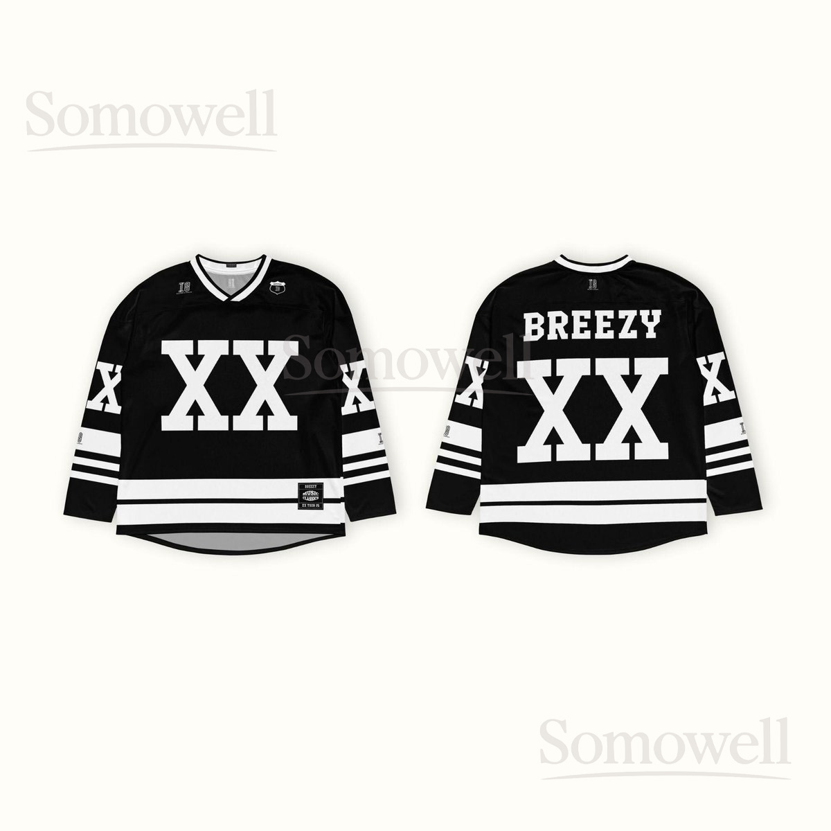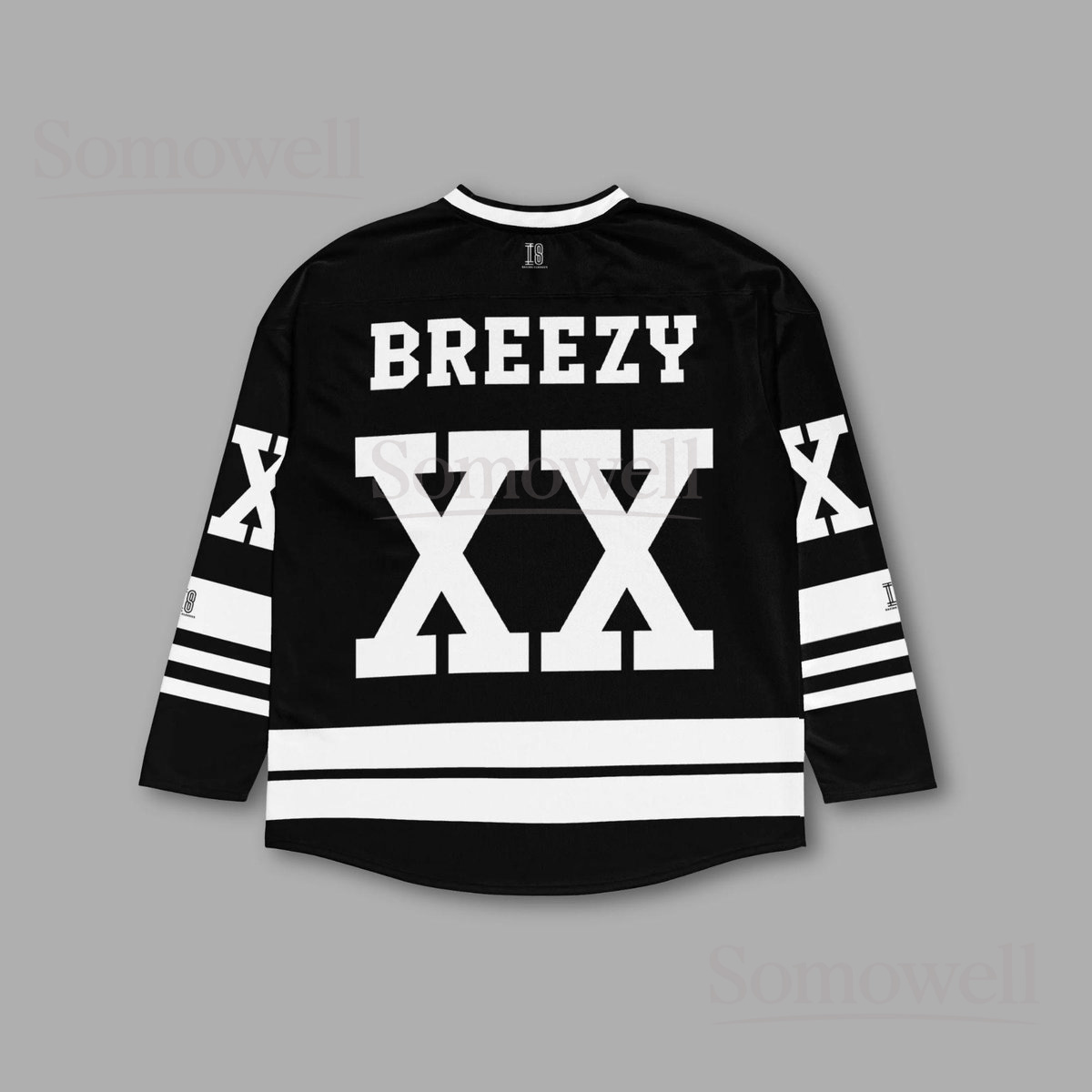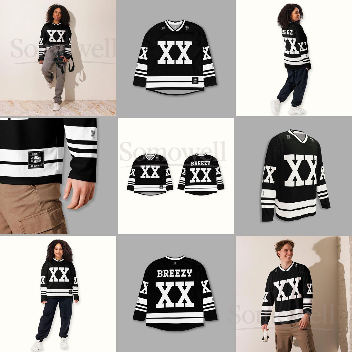 Custom Chris Brown Breezy Bowl Hockey Jersey Shirt for Music Fans Black and White XX Tour 2025 Concert Outfit