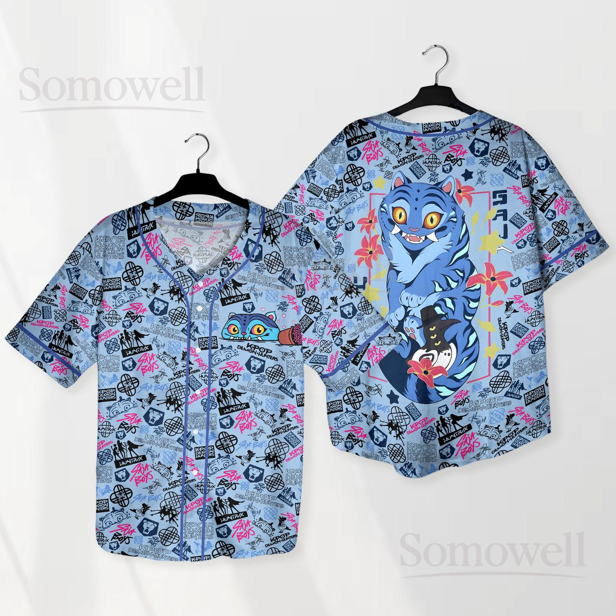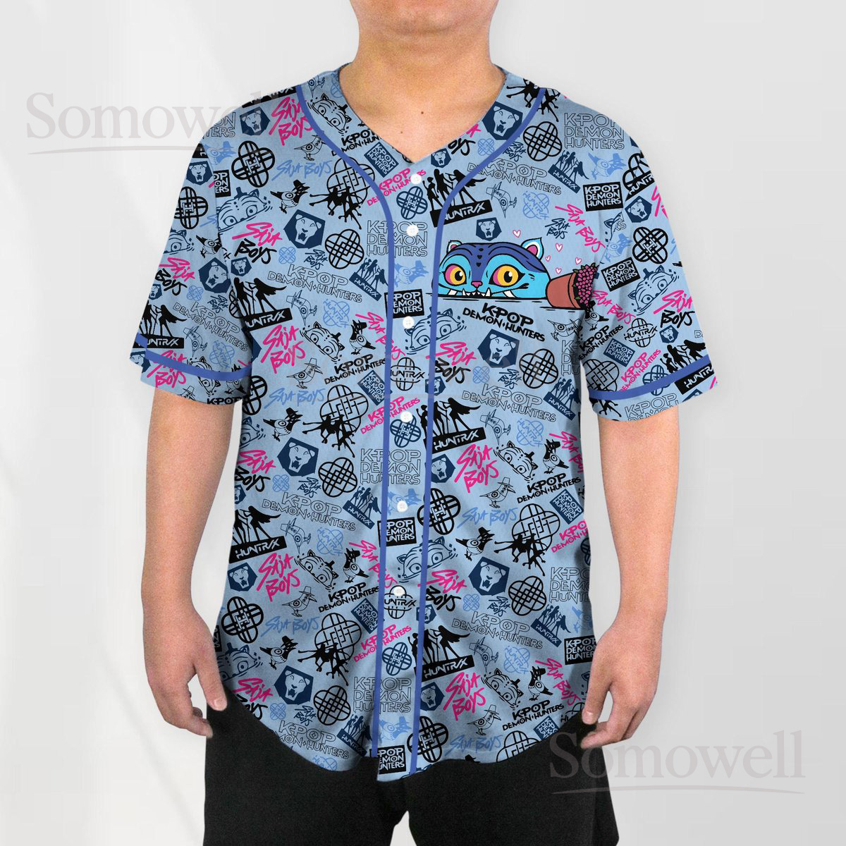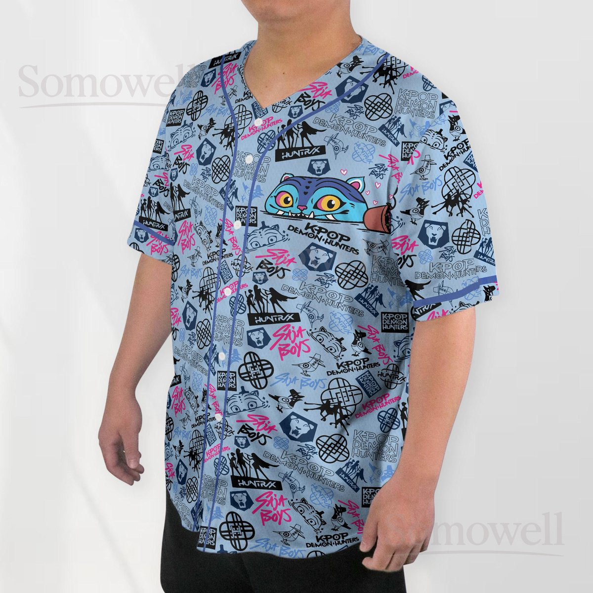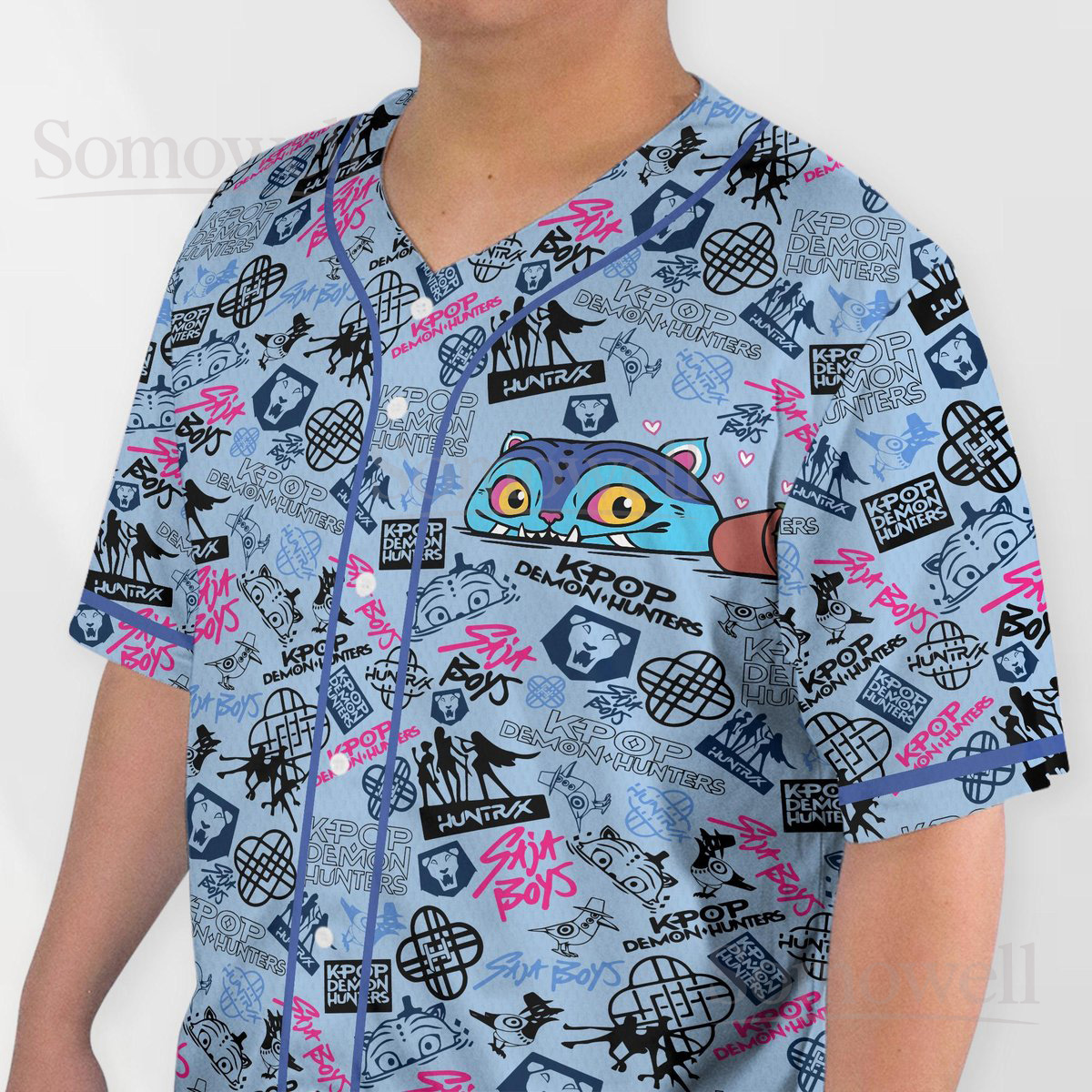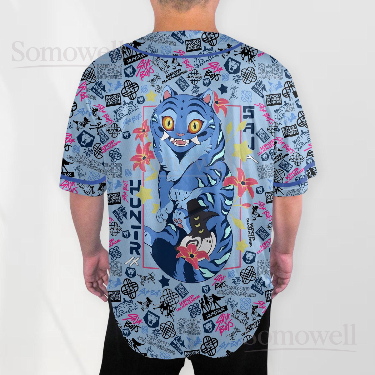 Custom Derpy Tiger Baseball Jersey Shirt for Animal Lovers Whimsical Blue Cartoon Design Perfect for Everyday Casual Wear