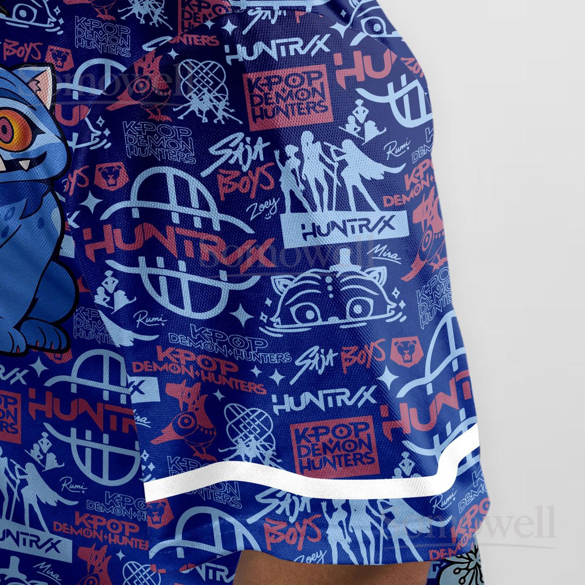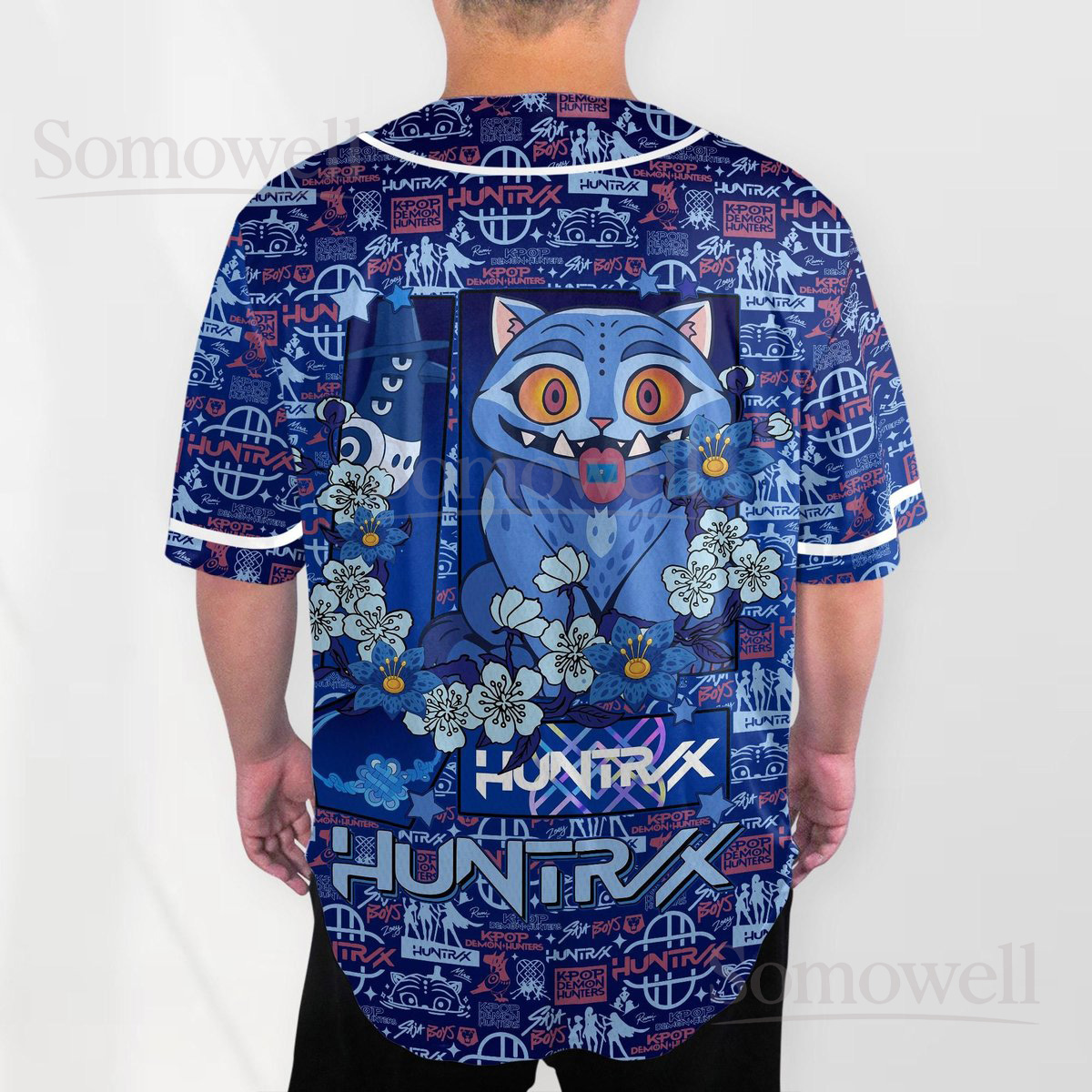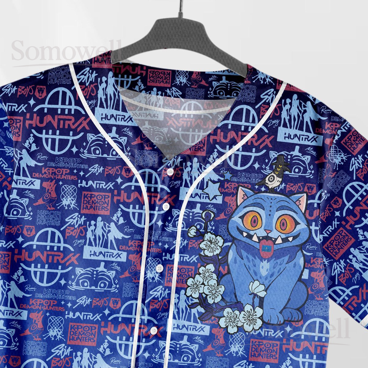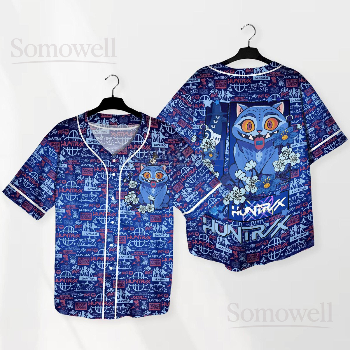 Custom Derpy Tiger Baseball Jersey Shirt for Animal Lovers Blue and Red Playful Cartoon Cat Design Gift Apparel
