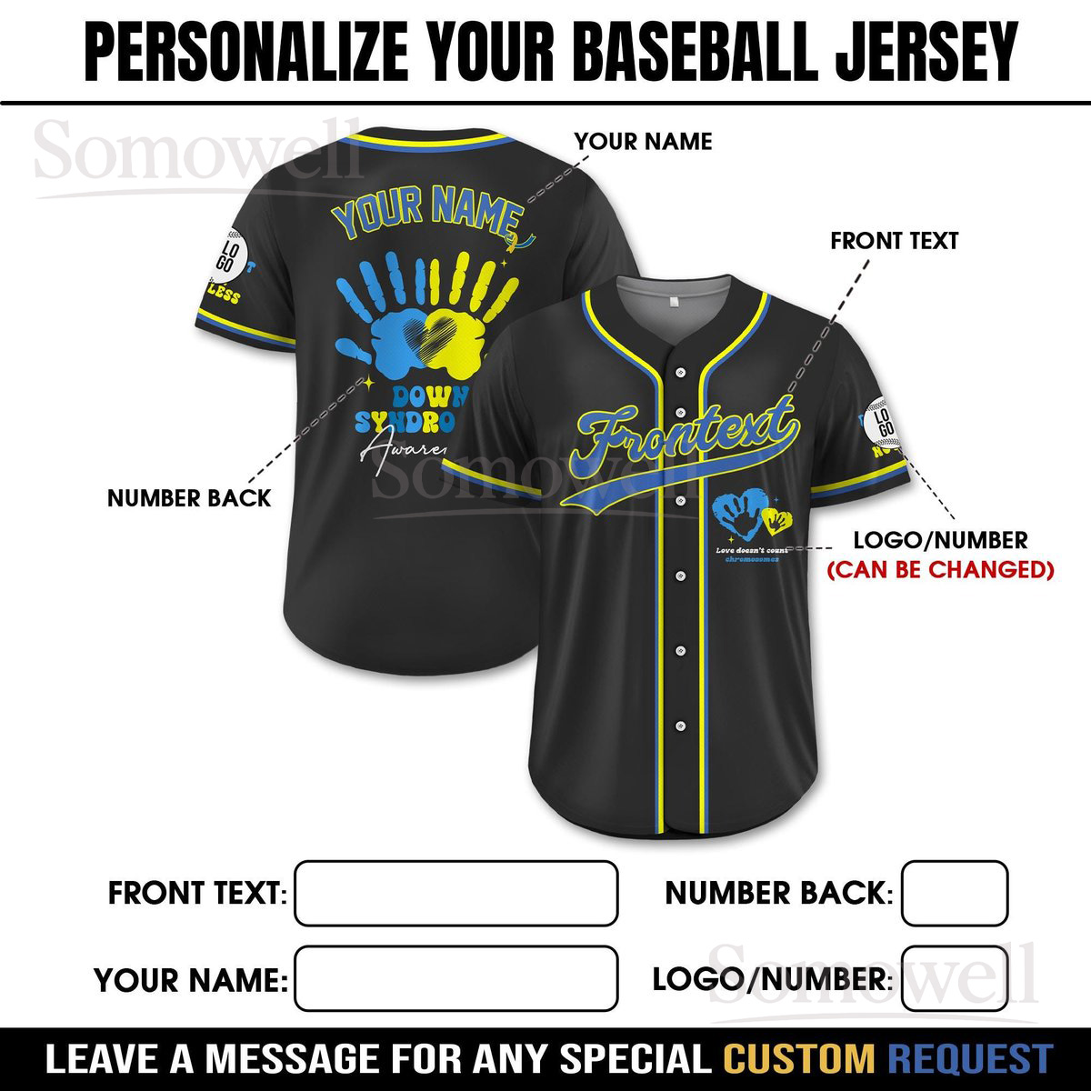 Custom Down Syndrome Awareness Baseball Jersey for Men Women Youth Kid Support Gift Shirt Multi Color Edition