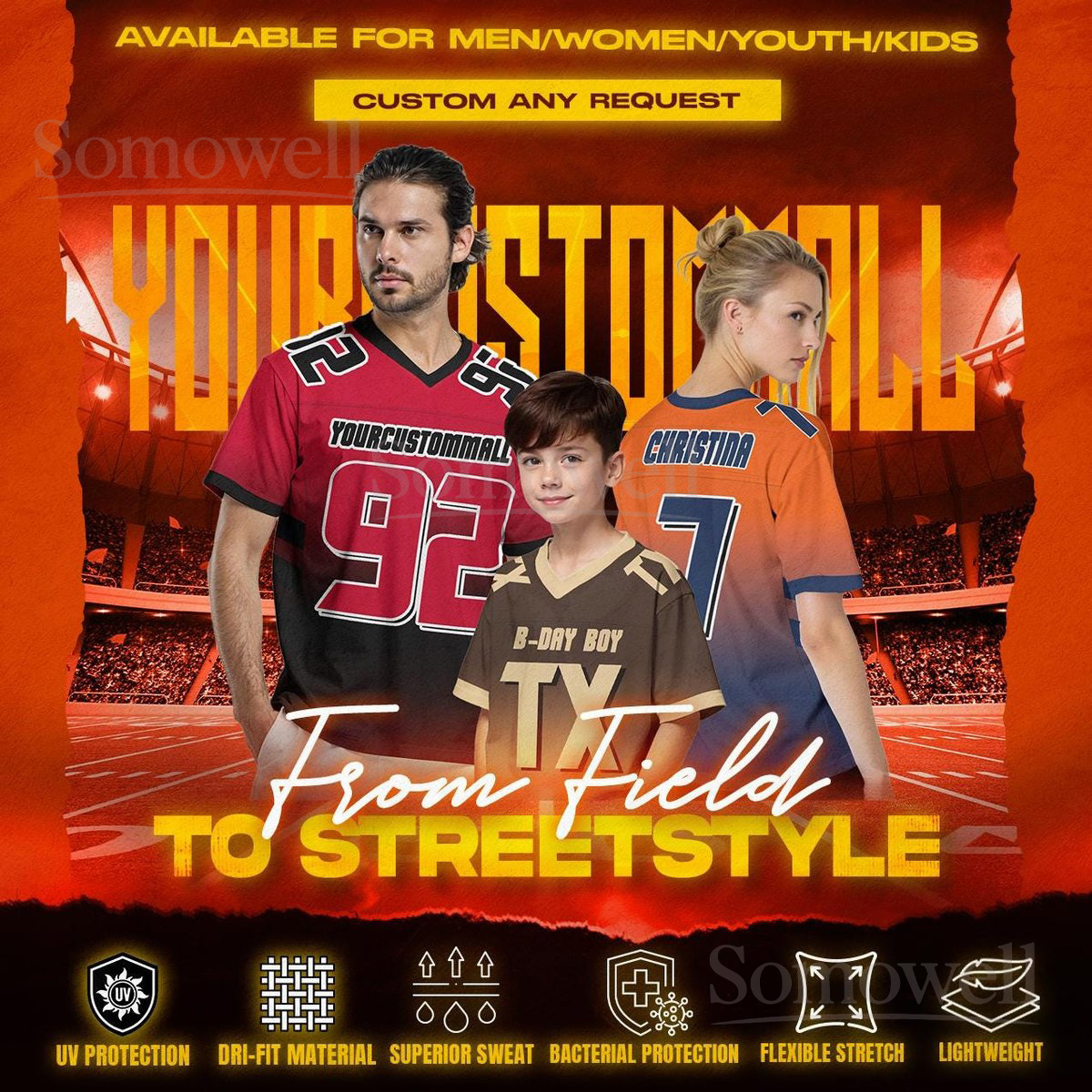 Custom Football Jersey Front and Back Design Personalized Team Name and Number Edition