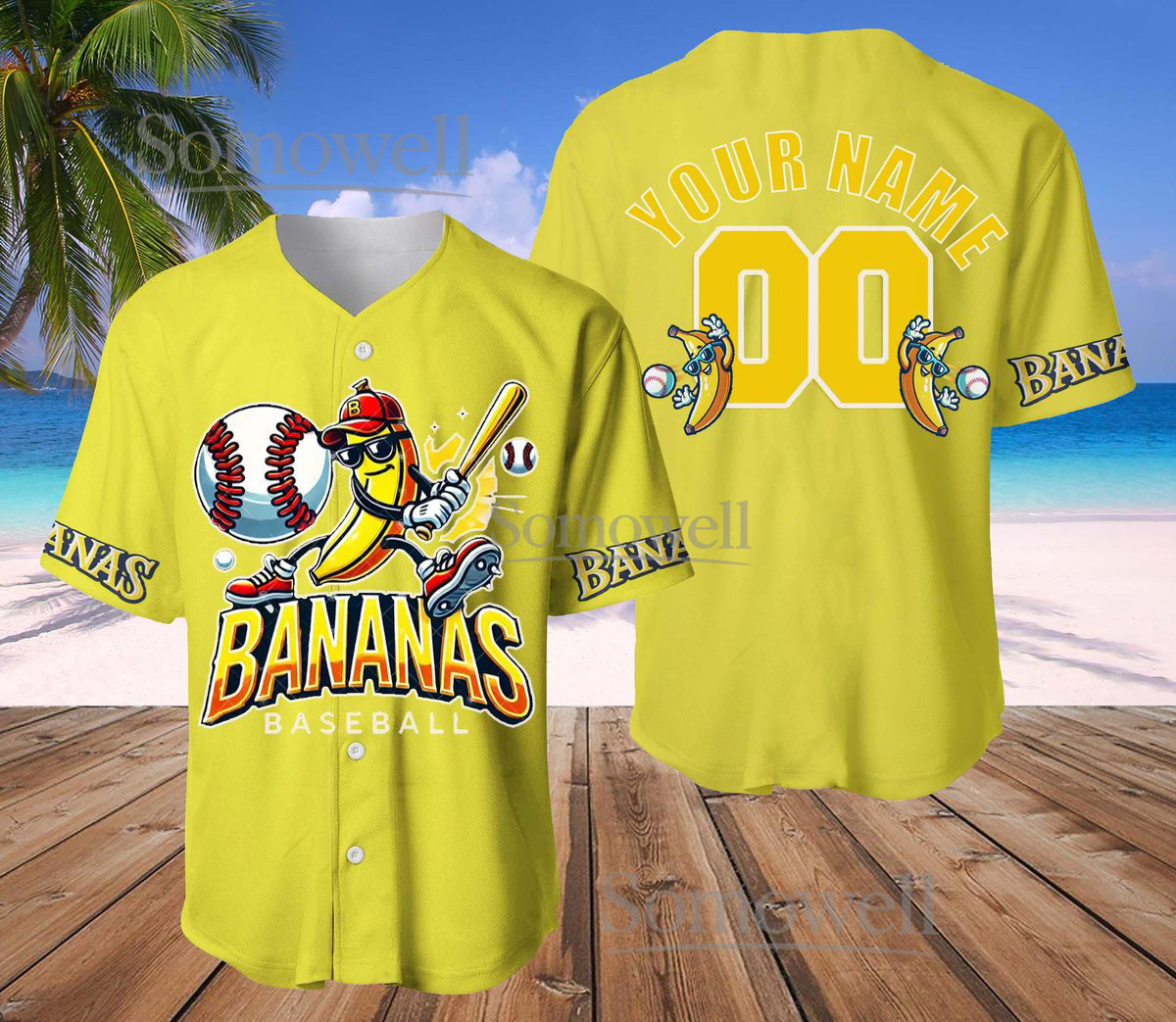 Custom Funny Banana Baseball Jersey Team Name Number Cartoon Edition Available in Multiple Colors