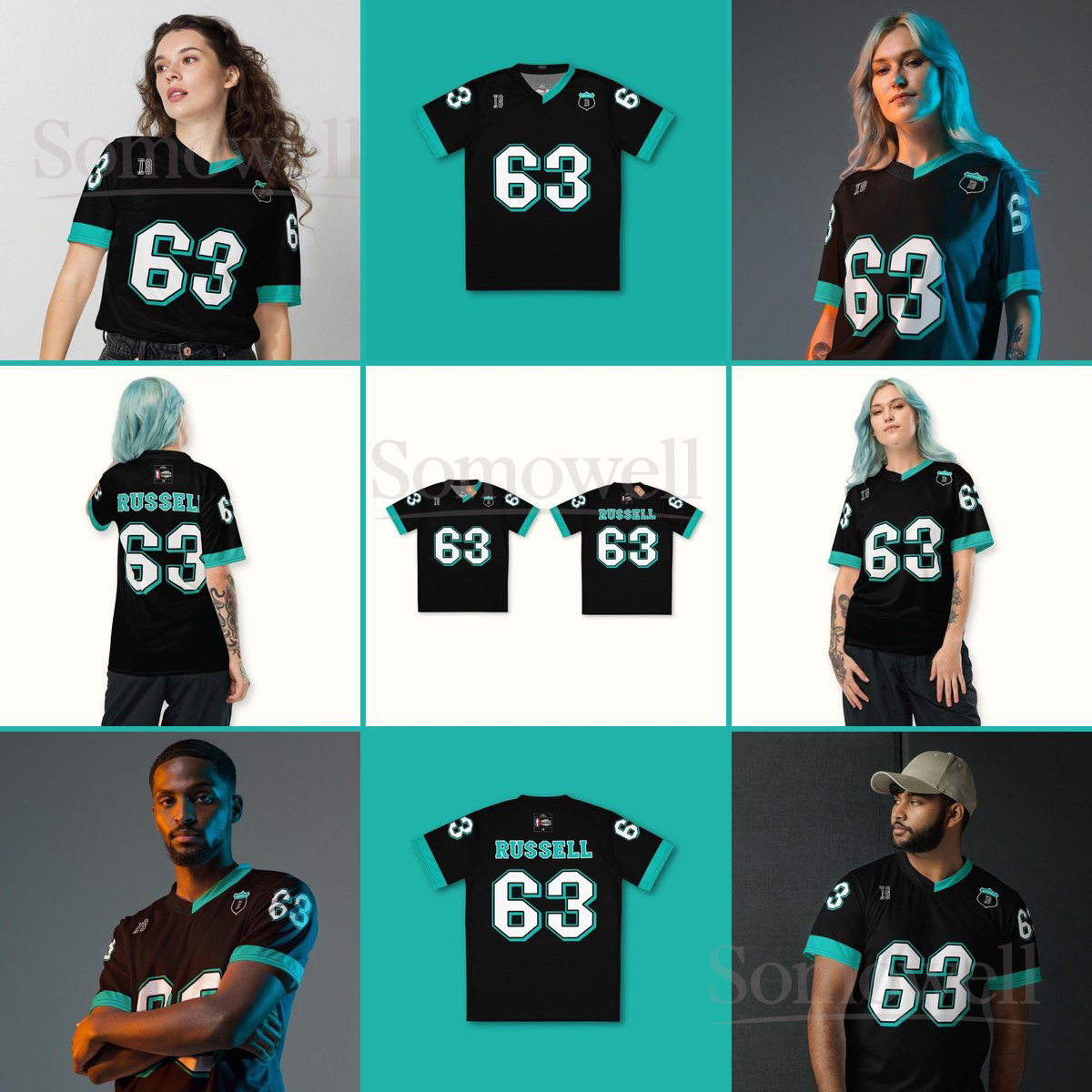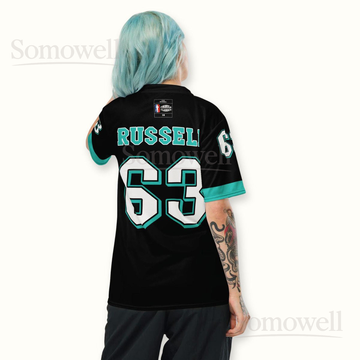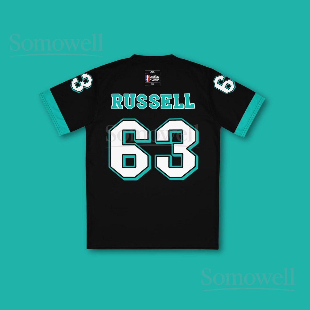 Custom George Russell Mercedes F1 Football Jersey Shirt for Racing Fans Black and Teal Recycled Polyester Formula One Outfit