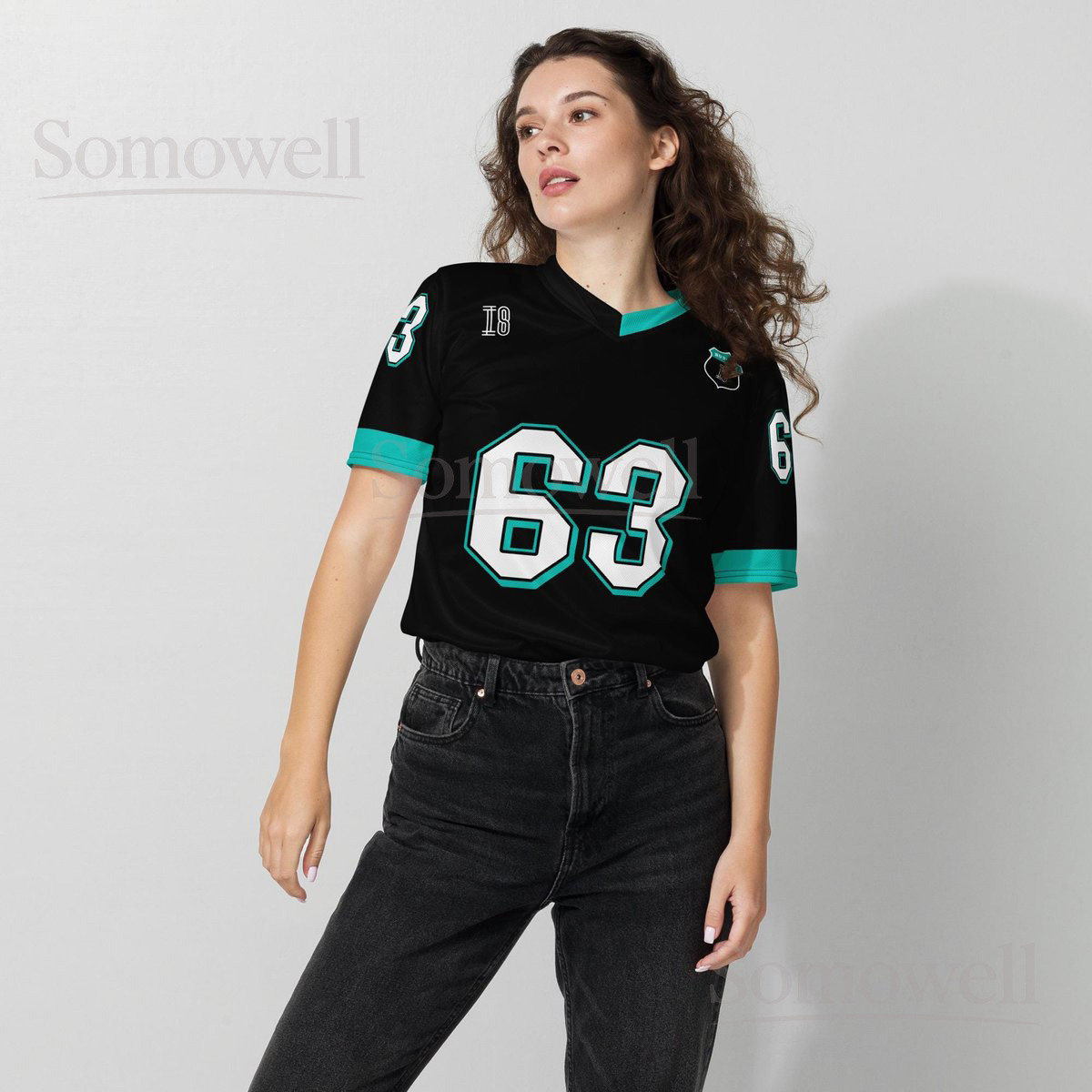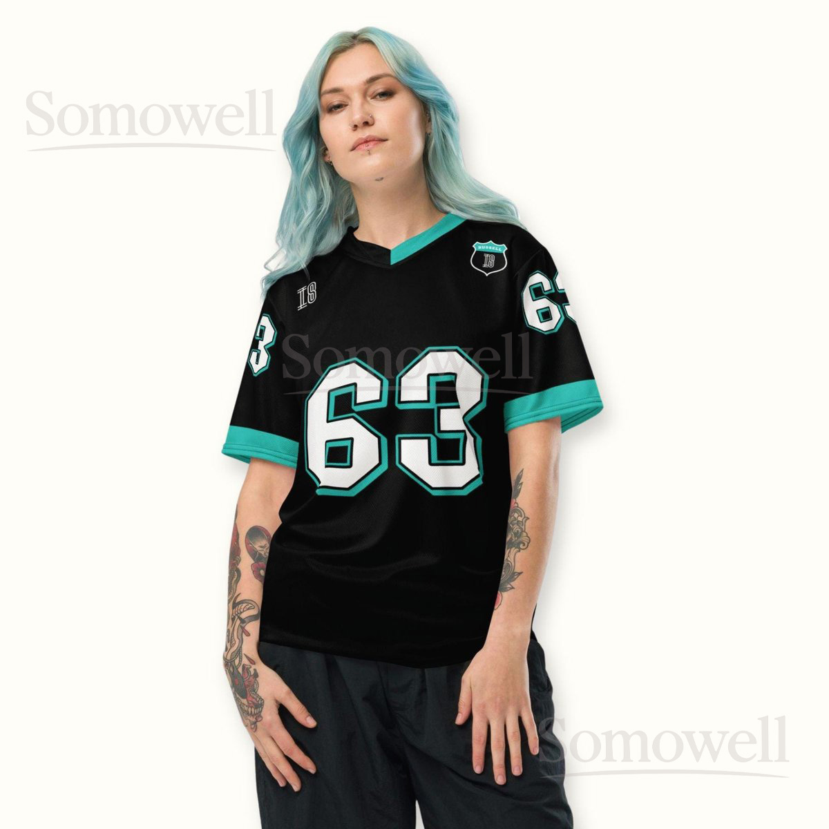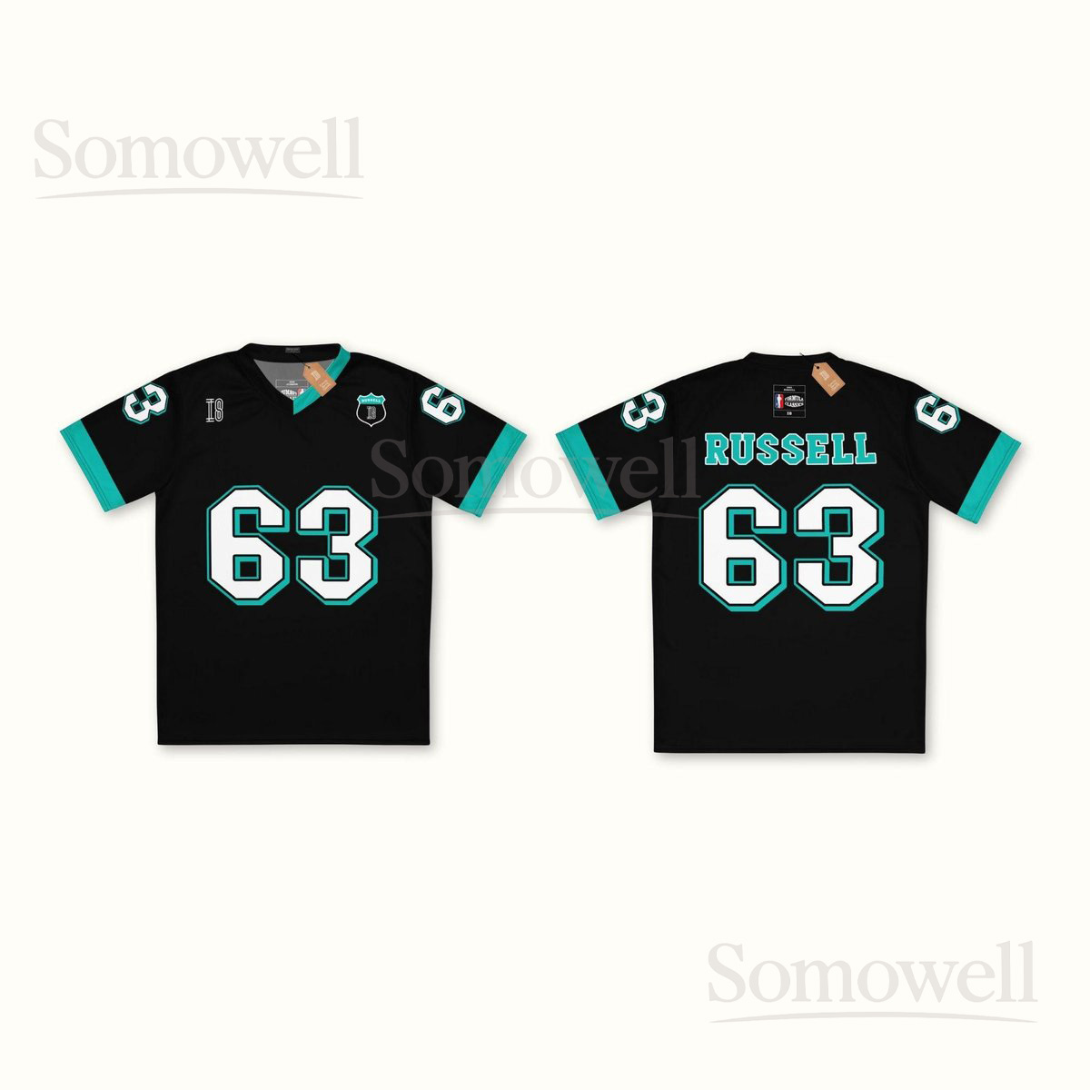 Custom George Russell Mercedes F1 Football Jersey Shirt for Racing Fans Black and Teal Recycled Polyester Formula One Outfit