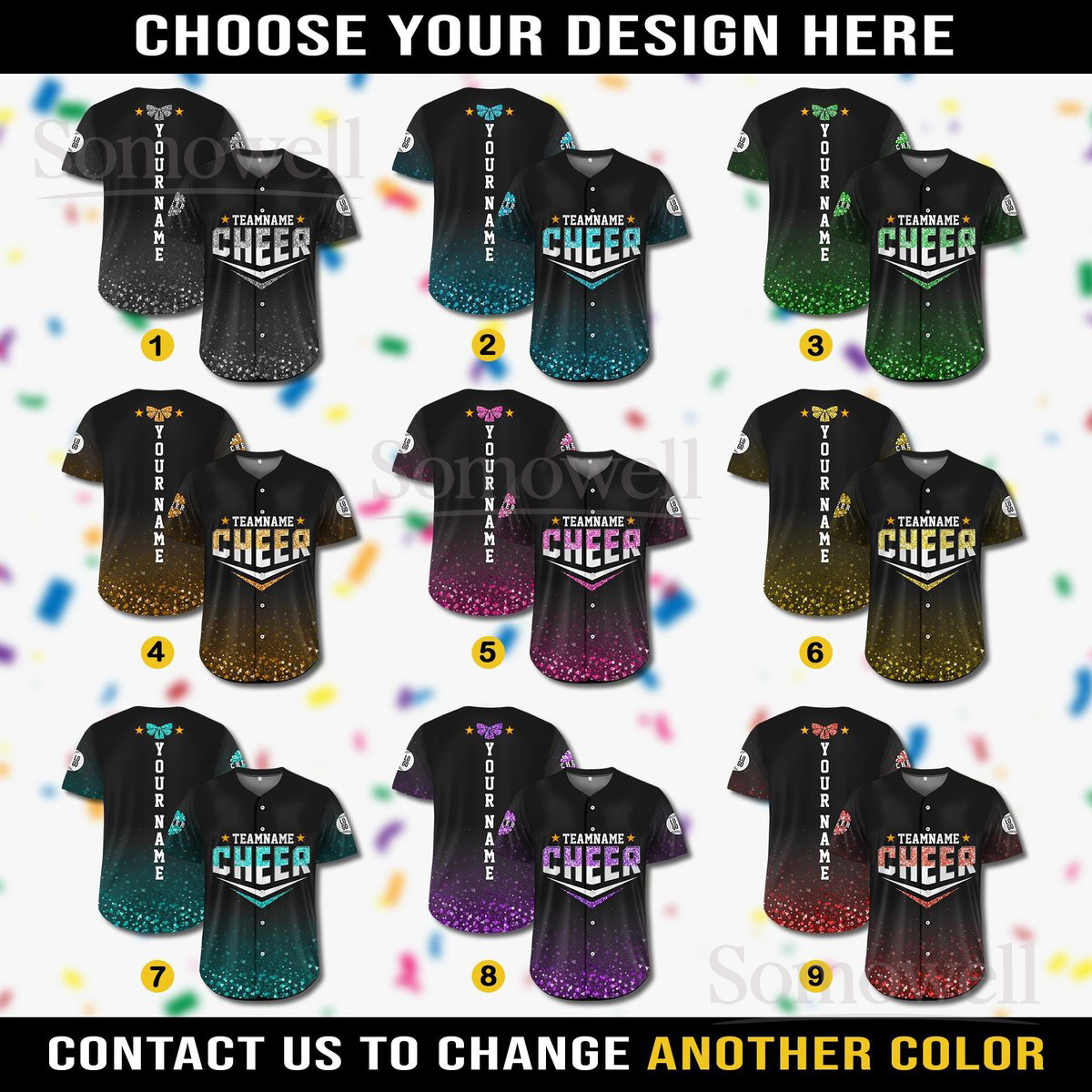 Custom Glitter Baseball Jersey with Team Name and Number for Adult and Kids in Multiple Colors