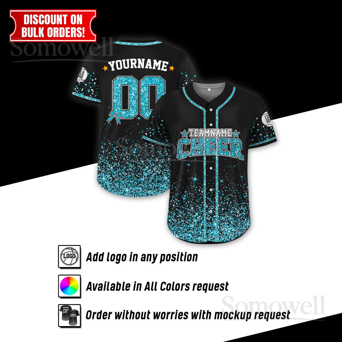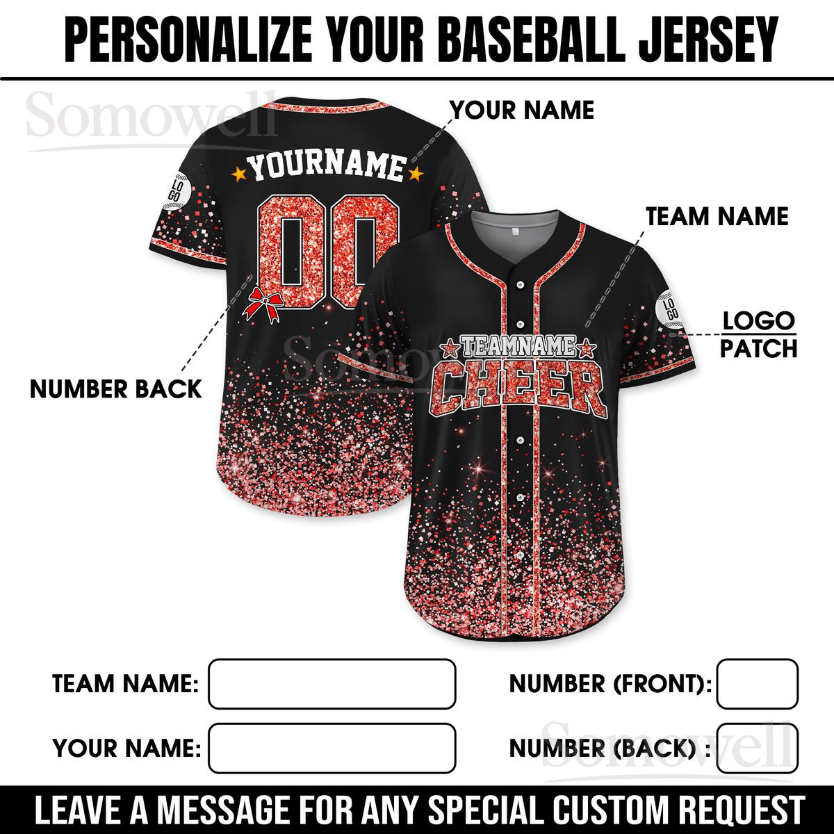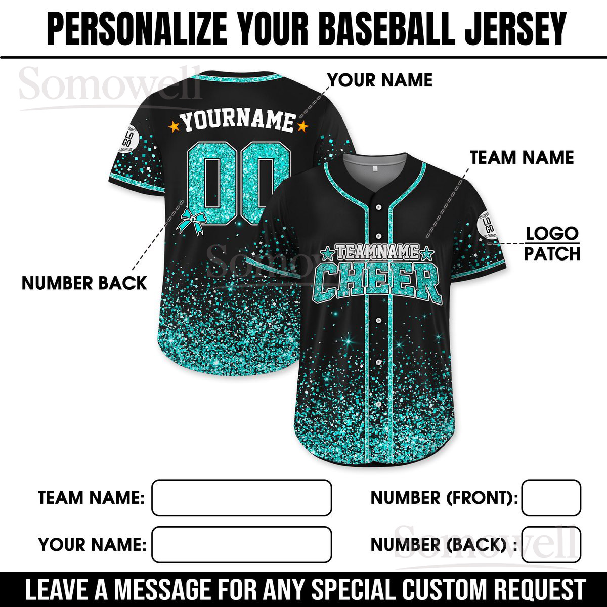 Custom Glitter Gradient Baseball Jersey Personalized Name and Team Number Sparkle Style for Men Women Youth Kid Multi Color Edition