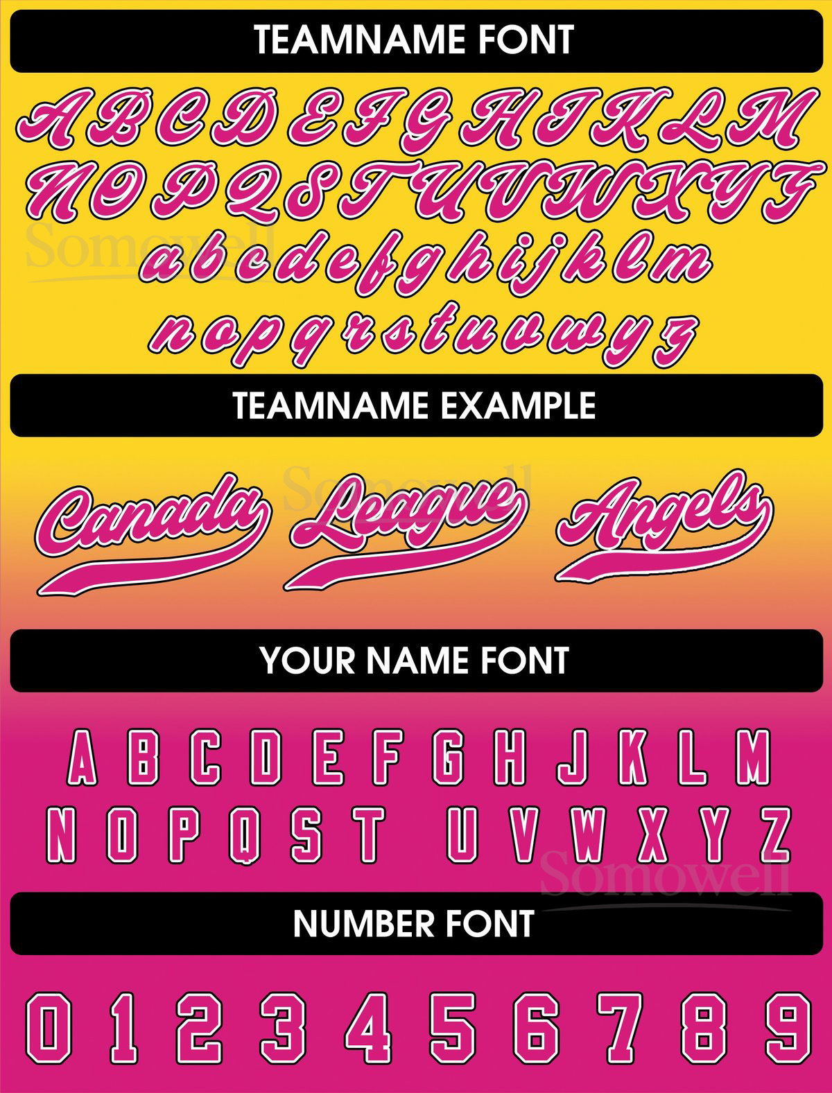 Custom Gradient Baseball Jersey with Teamname Name Number Yellow Pink in Multiple Colors