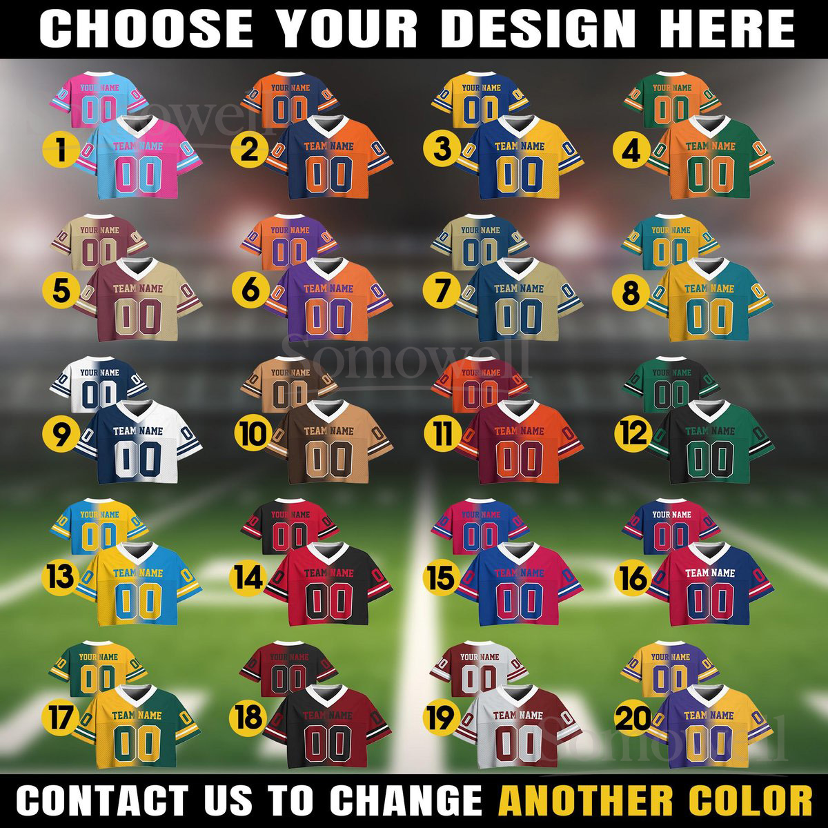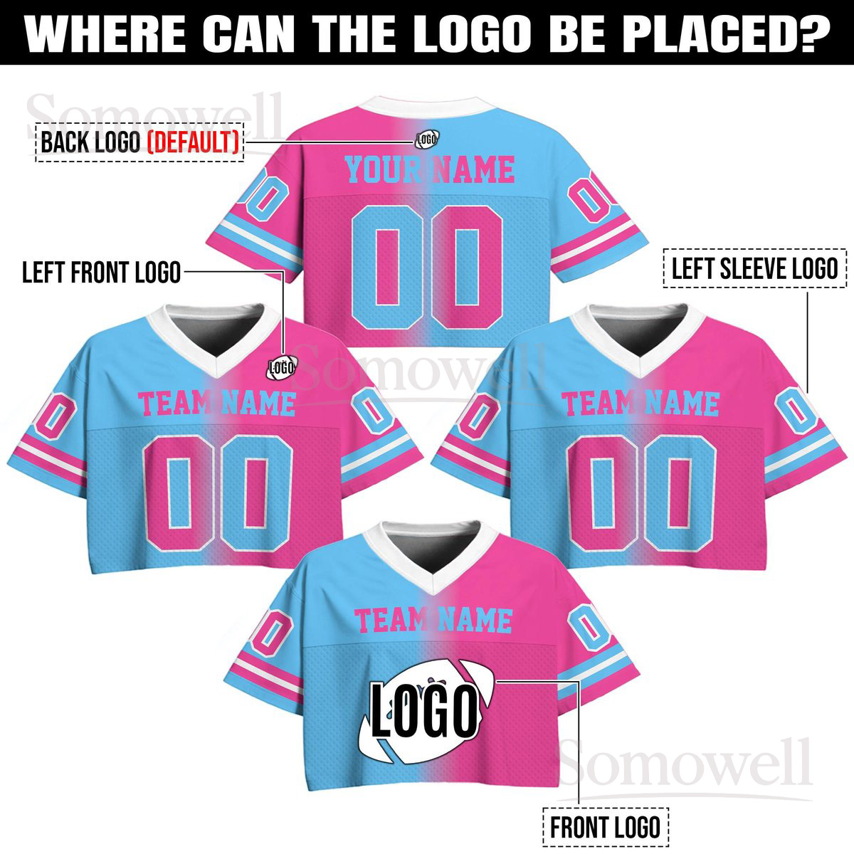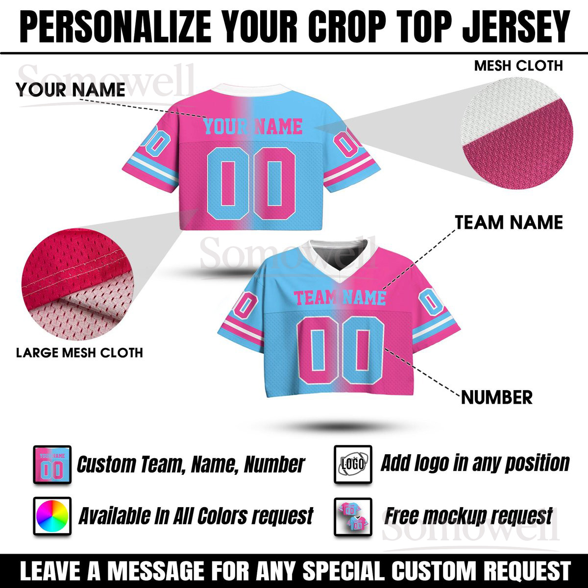 Custom Gradient Football Crop Jersey for Women Girl Personalized Team Name Number Stylish Game Day Top Multi Color Edition
