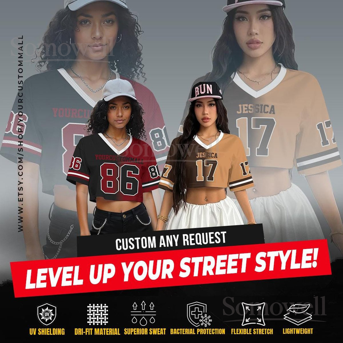 Custom Gradient Streetwear Crop Top Sports Girl Outfit Personalized Football Jersey for Women Multi Color Edition