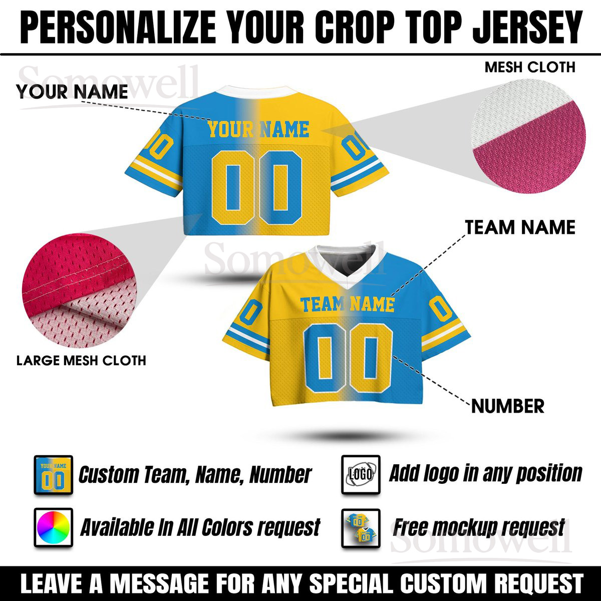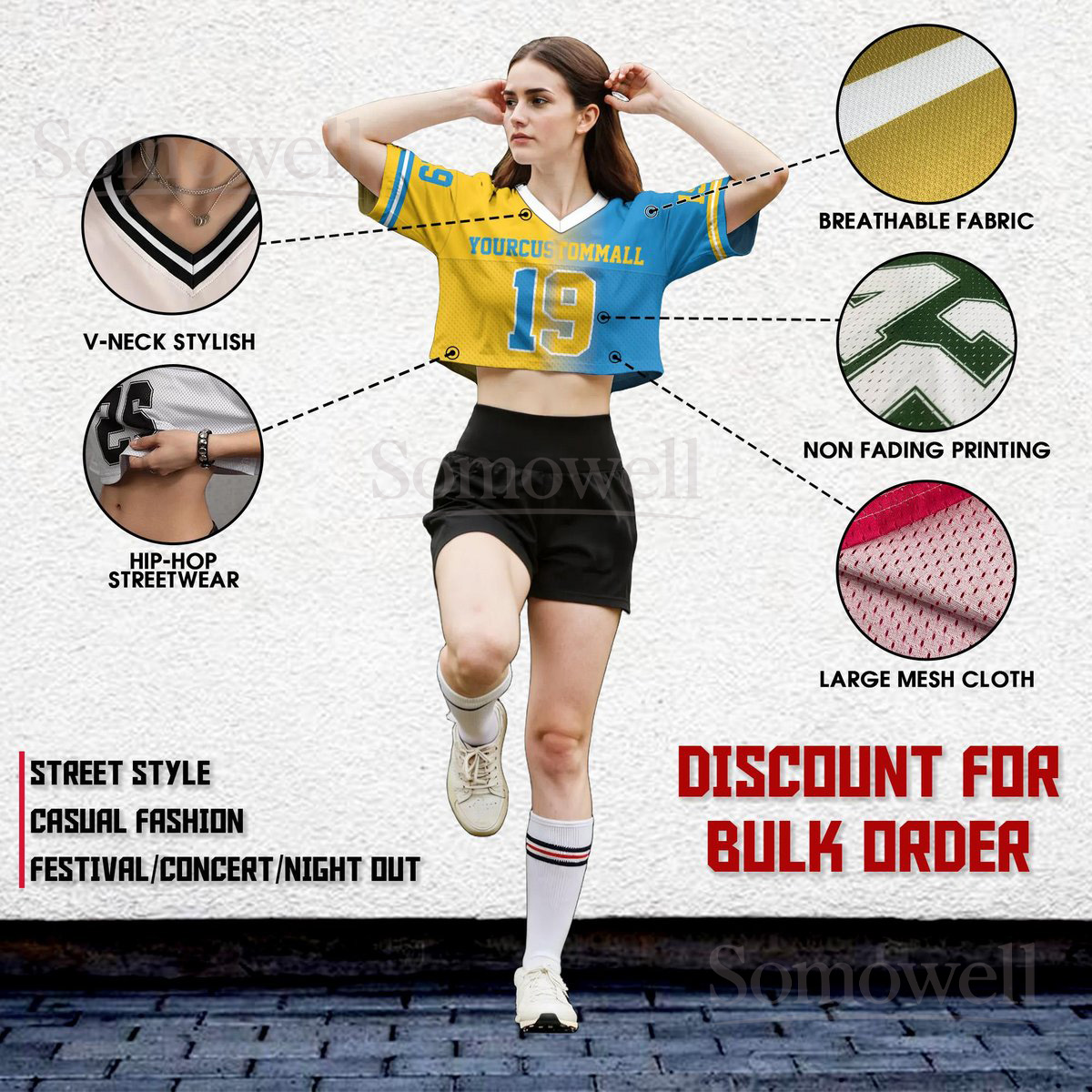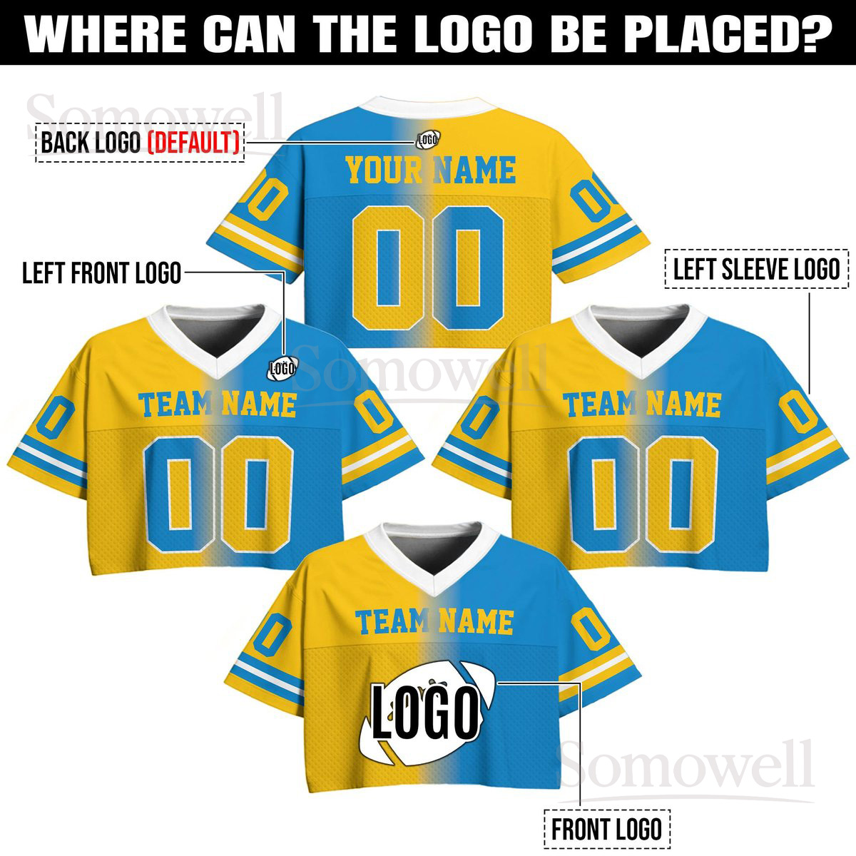 Custom Gradient V Neck Football Crop Top Jersey Many Colors Personalized Team Name Number