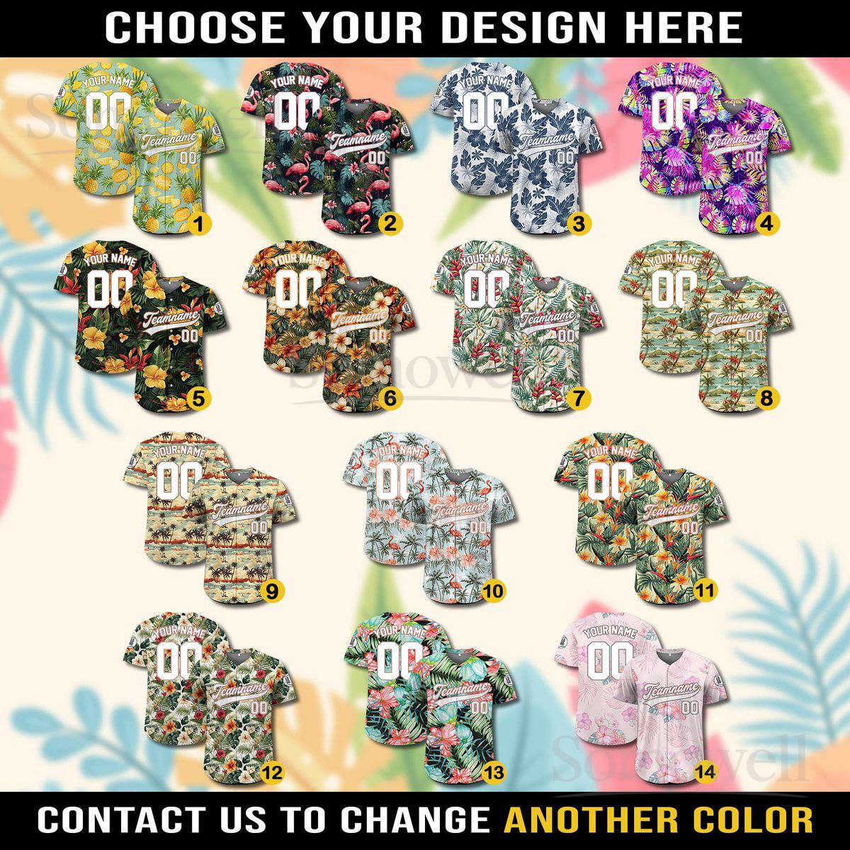 Custom Hawaiian Baseball Jersey with Team Name Number and Logo for Men Women and Youth