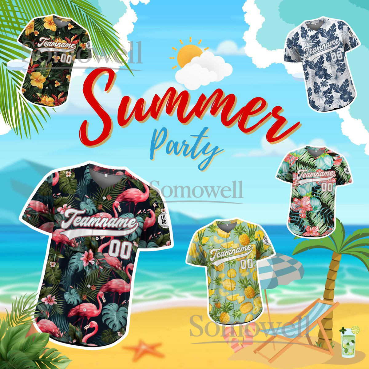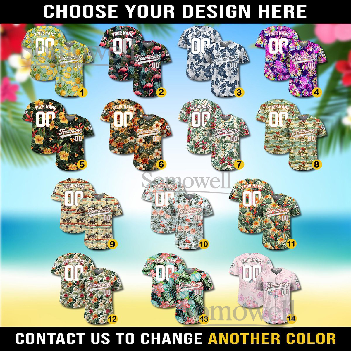 Custom Hawaiian Baseball Jersey with Team Name Number for Men, Women, and Kids in Various Colors