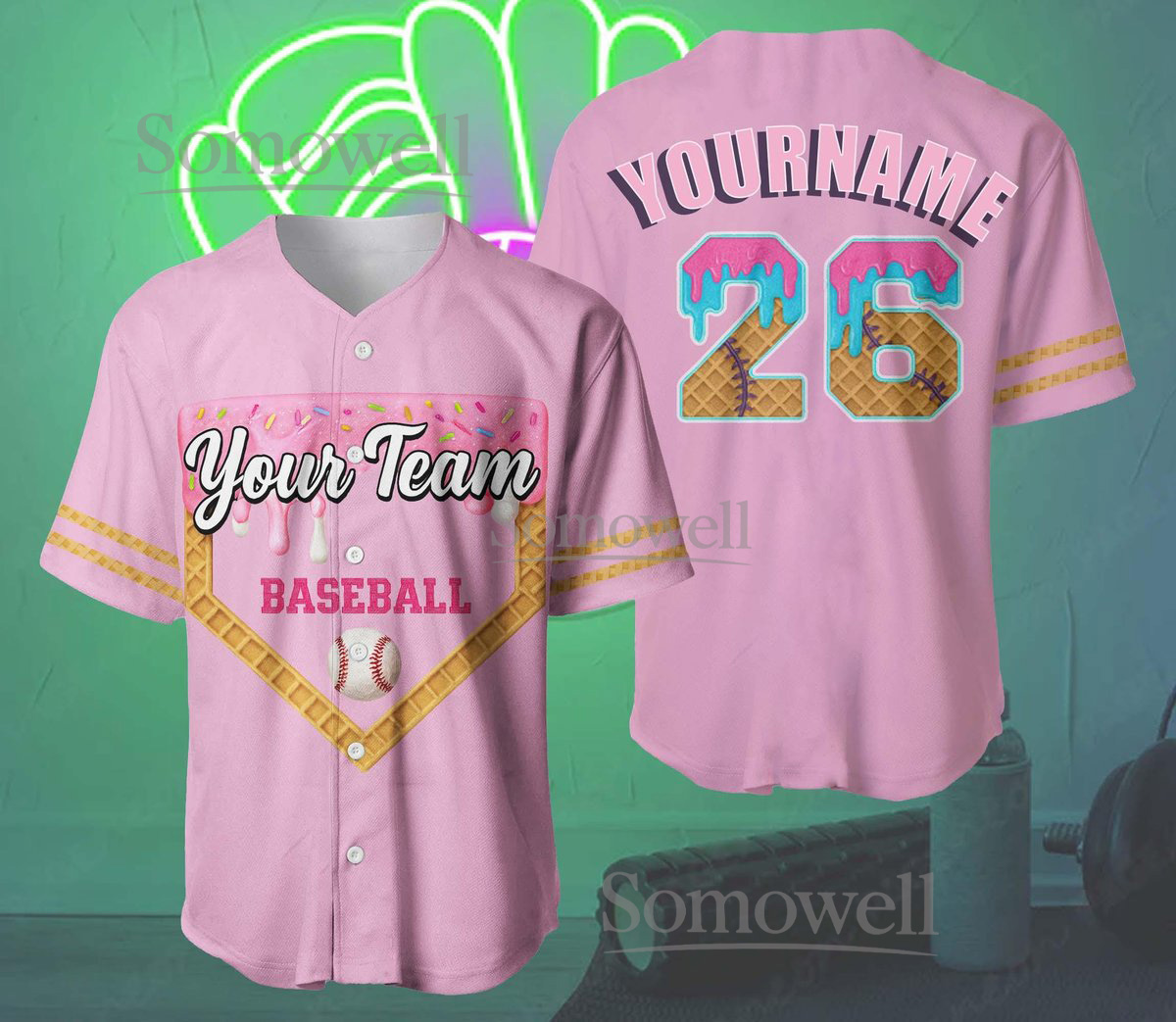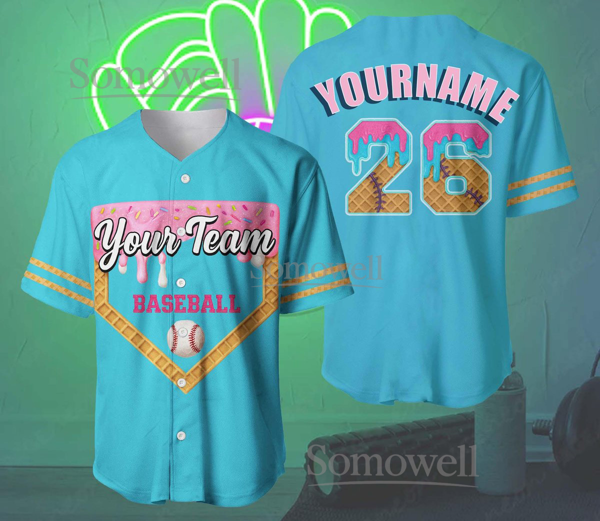 Custom Ice Cream Baseball Jersey Shirt Personalized Your Team Summer Gift