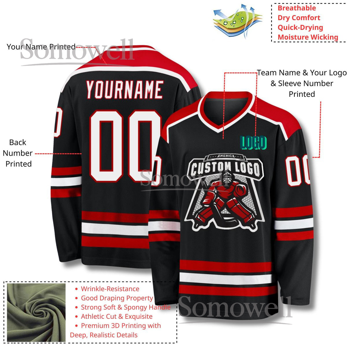 Custom Hockey Jersey Personalized Name Number Team Logo Edition Perfect Gift for Players and Fans