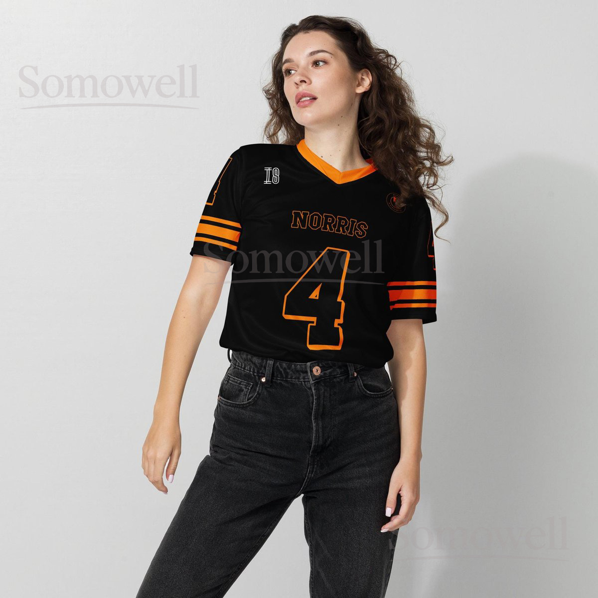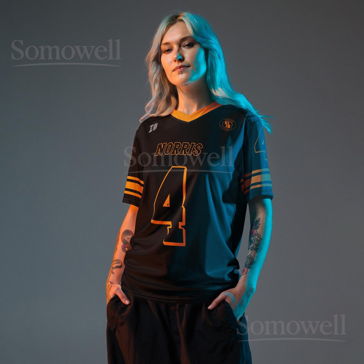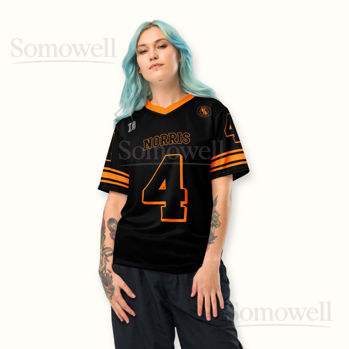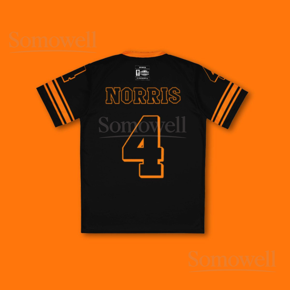 Custom Lando Norris McLaren F1 Football Jersey Shirt for Racing Fans Black and Orange Formula 1 Team Apparel