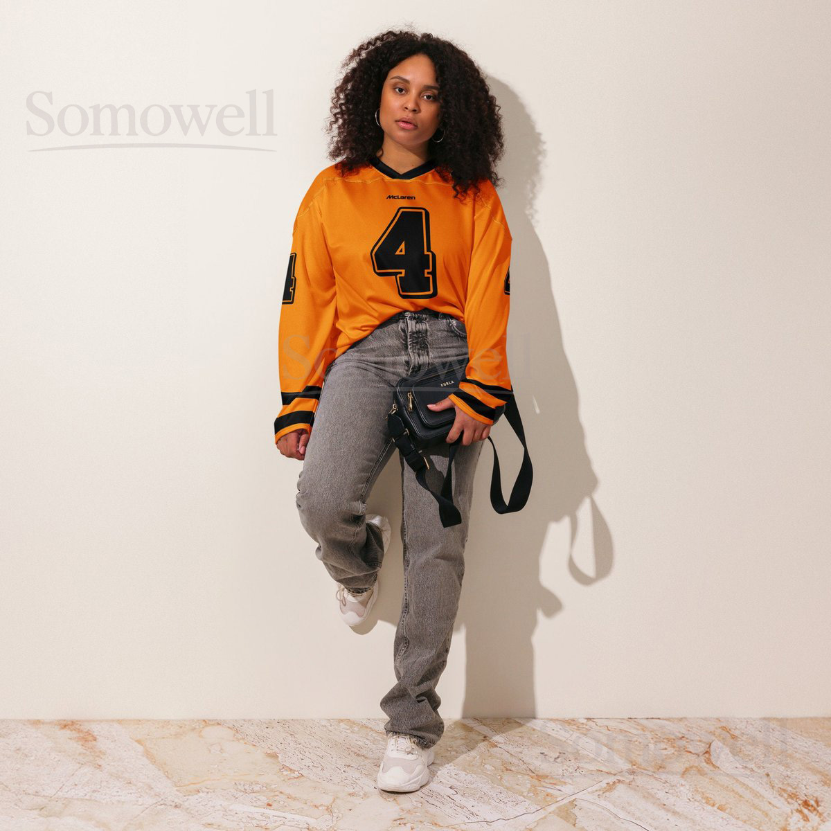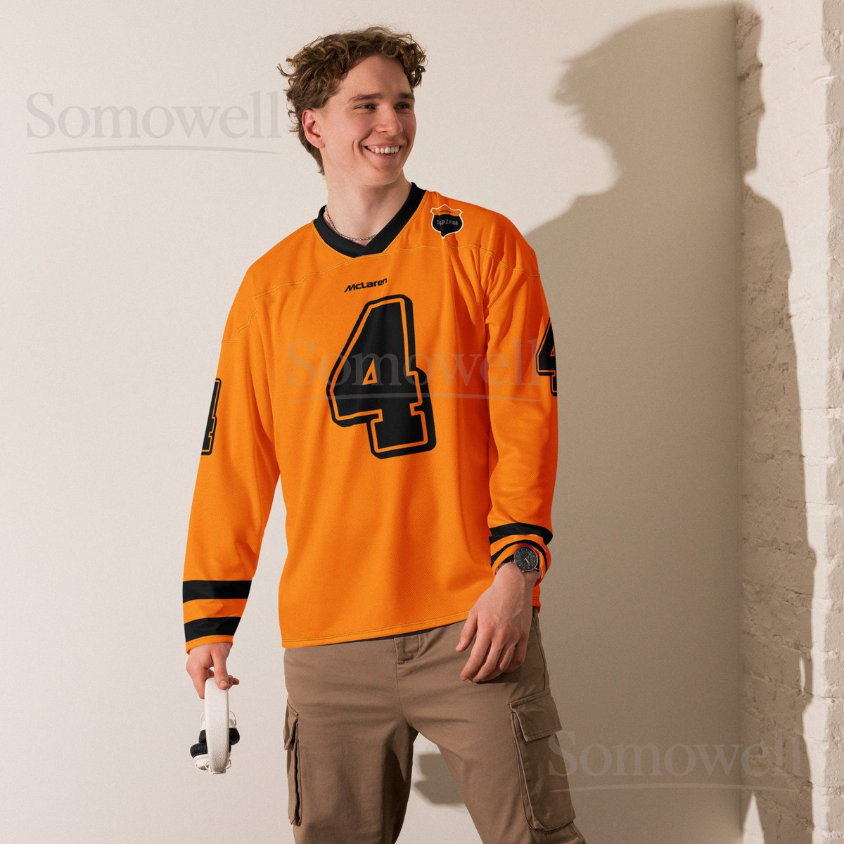 Custom Lando Norris McLaren F1 Sweatshirt Shirt for Racing Fans Papaya Orange Team Jersey with Bold Number Design