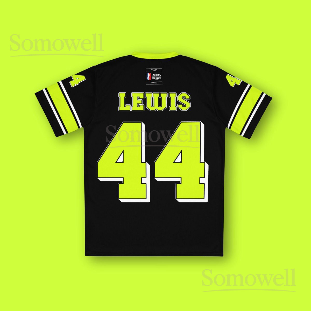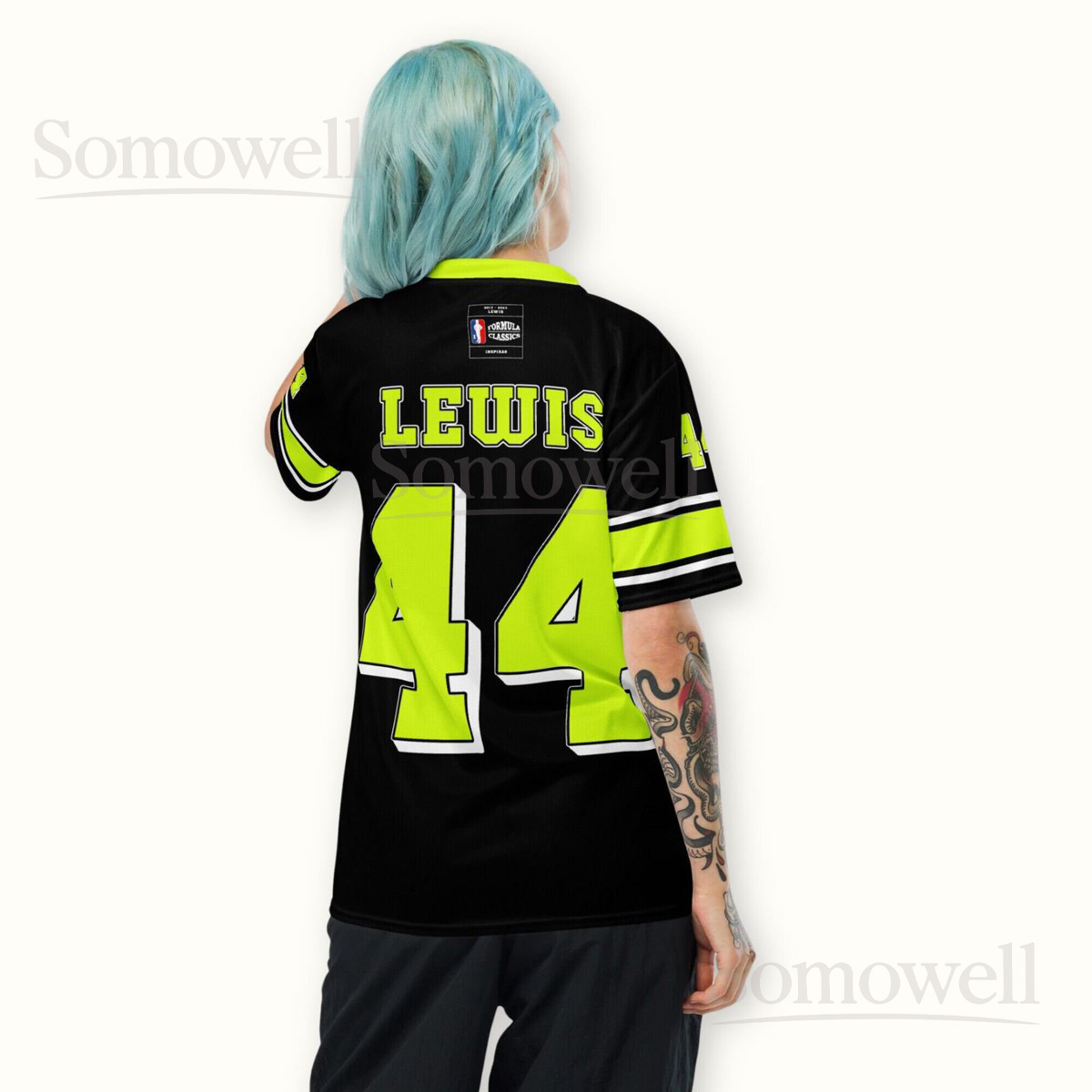 Custom Lewis Hamilton Mercedes F1 Football Jersey Shirt for Formula 1 Fans Black and Yellow Number 44 Unisex Team Apparel