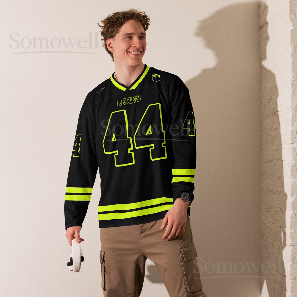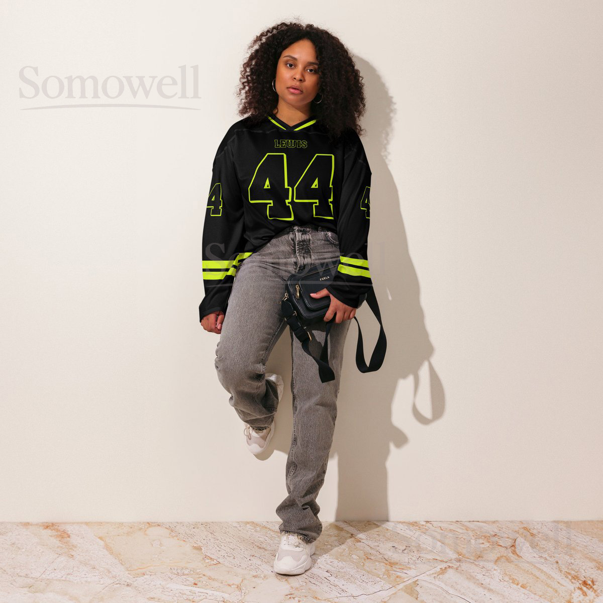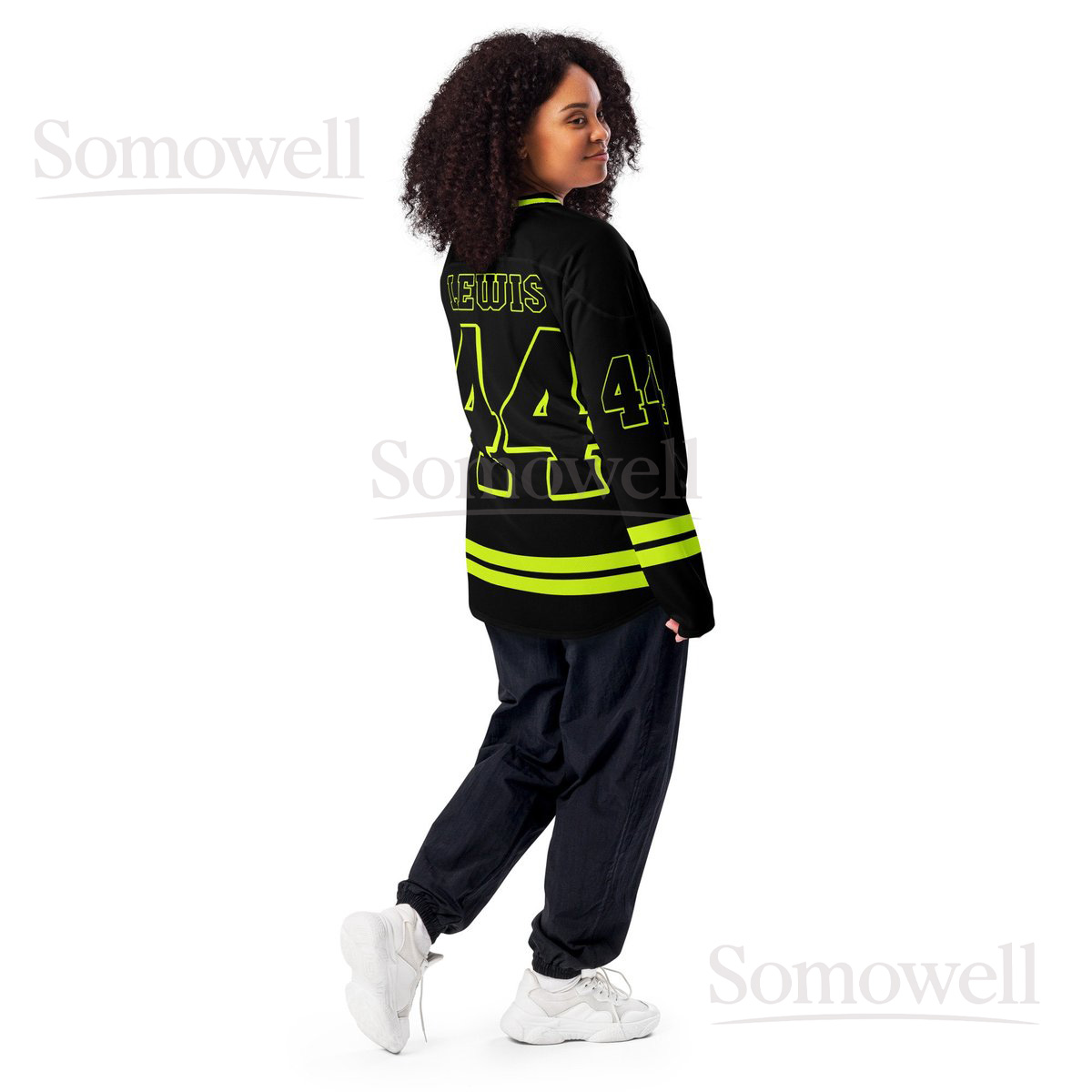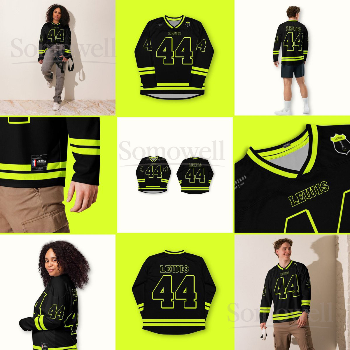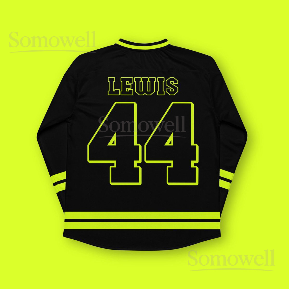 Custom Lewis Hamilton Mercedes F1 Hockey Jersey Shirt for Formula 1 Fans Black and Yellow Number 44 Racing Apparel