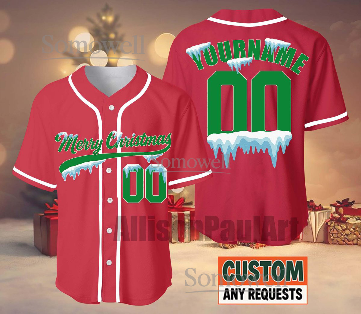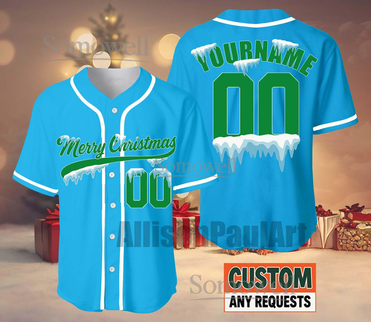 Custom Merry Christmas Baseball Jersey Black Green Ice Edition Available in Multiple Colors