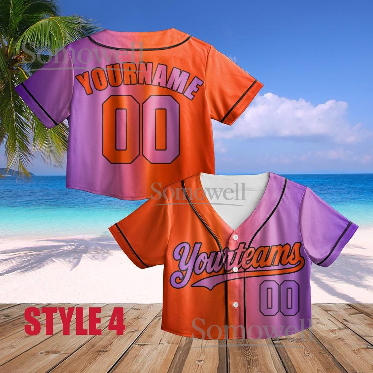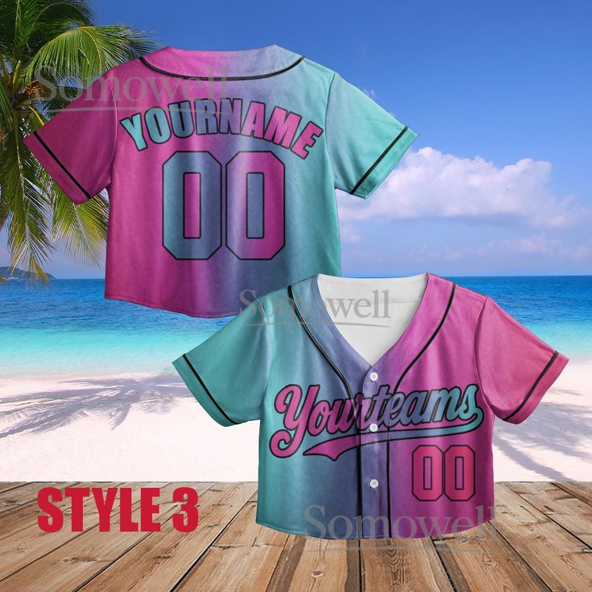 Custom Neon Crop Baseball Jersey Pink Green Ombre Gradient Personalized Team Name Number Shirt