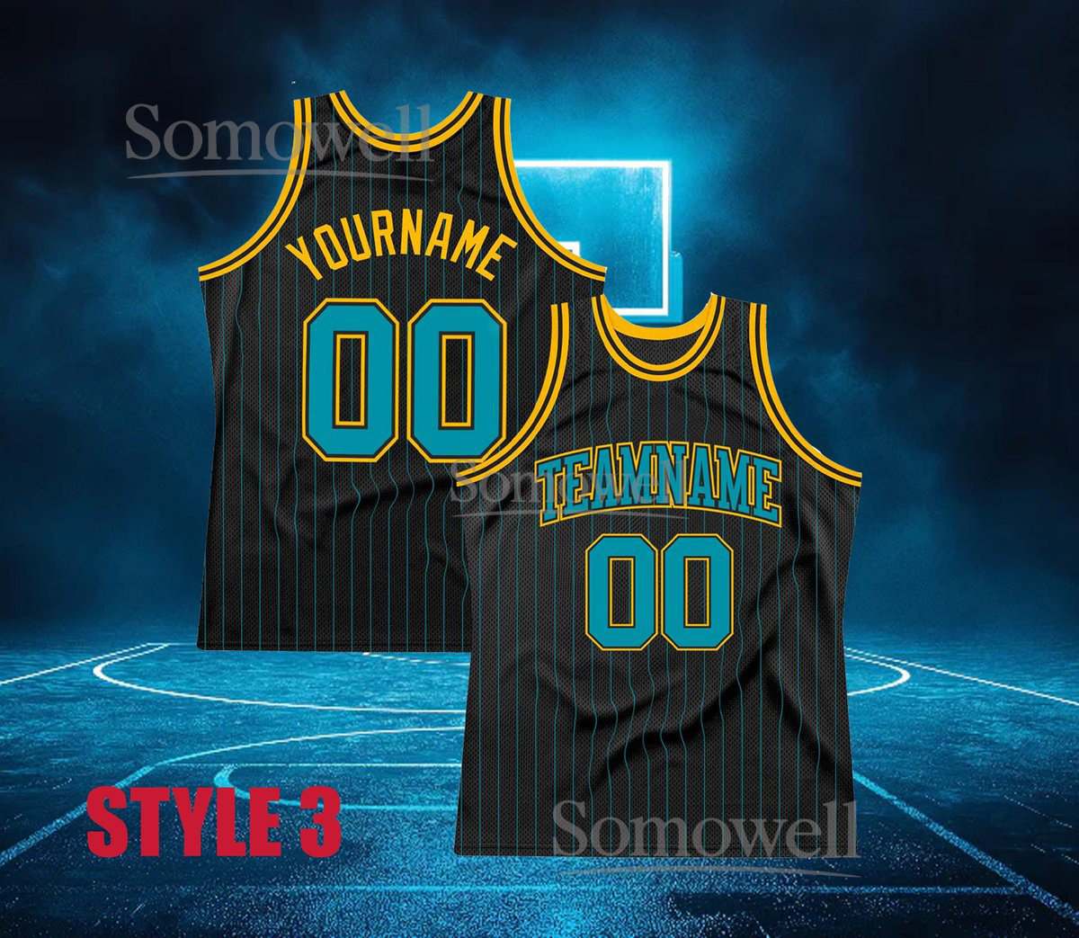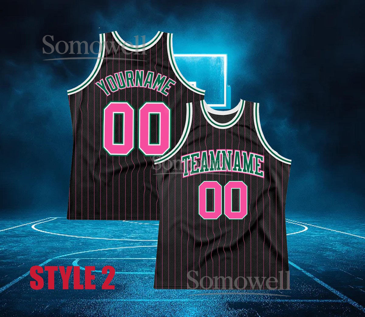 Custom Neon Basketball Jersey Black Pinstripe Pink Green Orange Trim Personalized Team Name Number Sleeveless Top