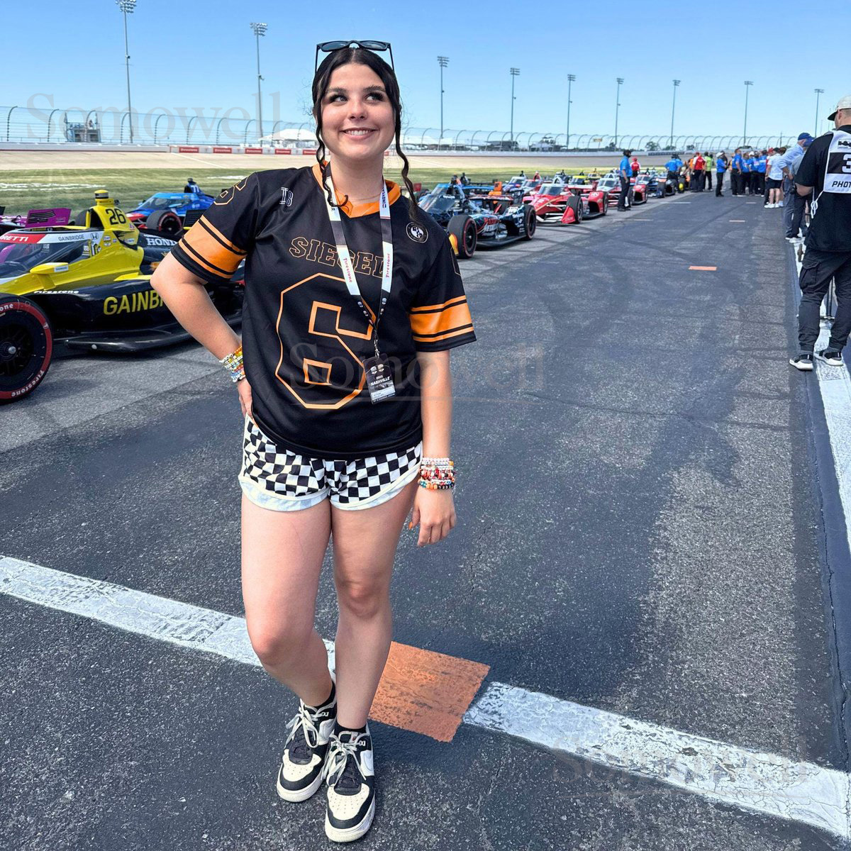 Custom Nolan Siegel Arrow McLaren IndyCar Football Jersey Shirt for Racing Fans Black and Orange Motorsport Team Apparel