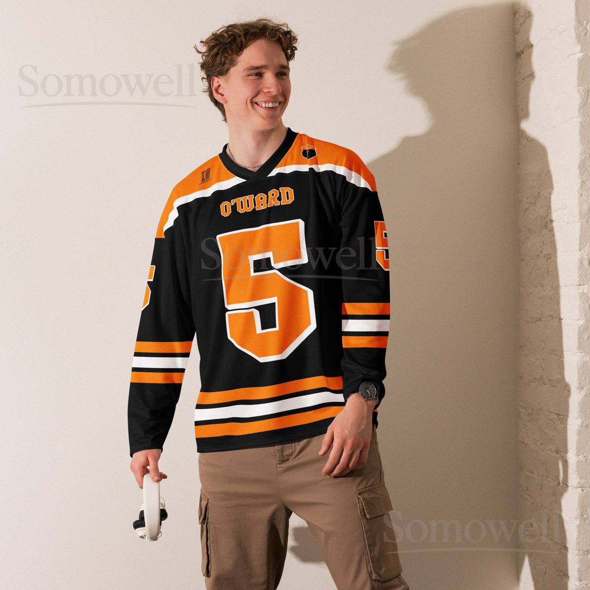 Custom Pato O’Ward McLaren IndyCar Hockey Jersey Shirt for Racing Fans Black and Orange Motorsport Team Gift Apparel