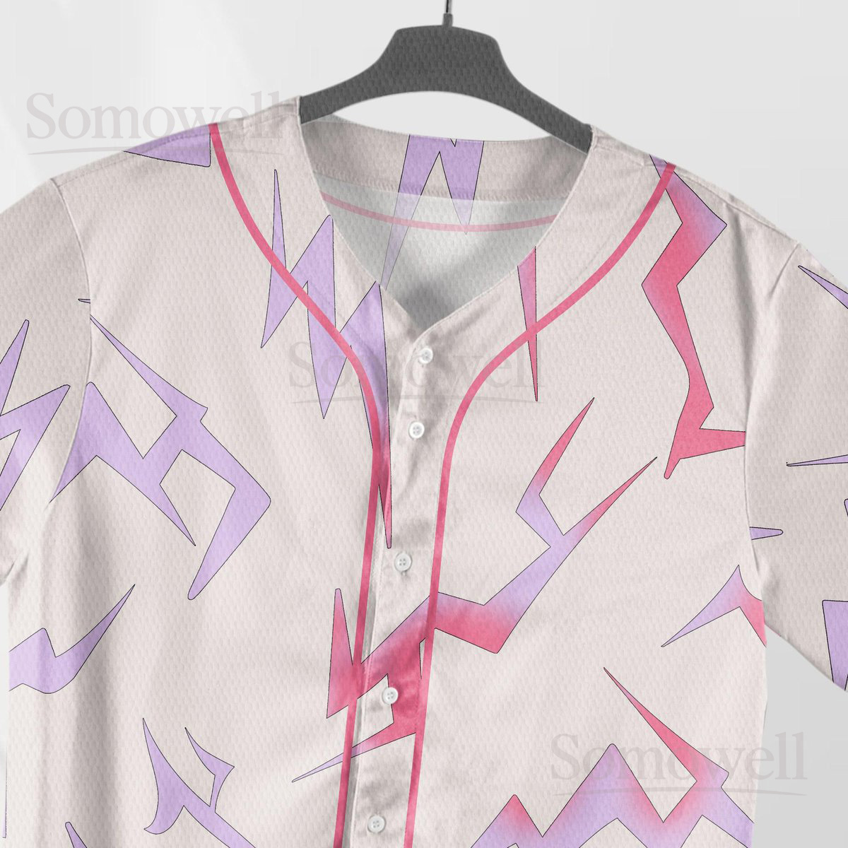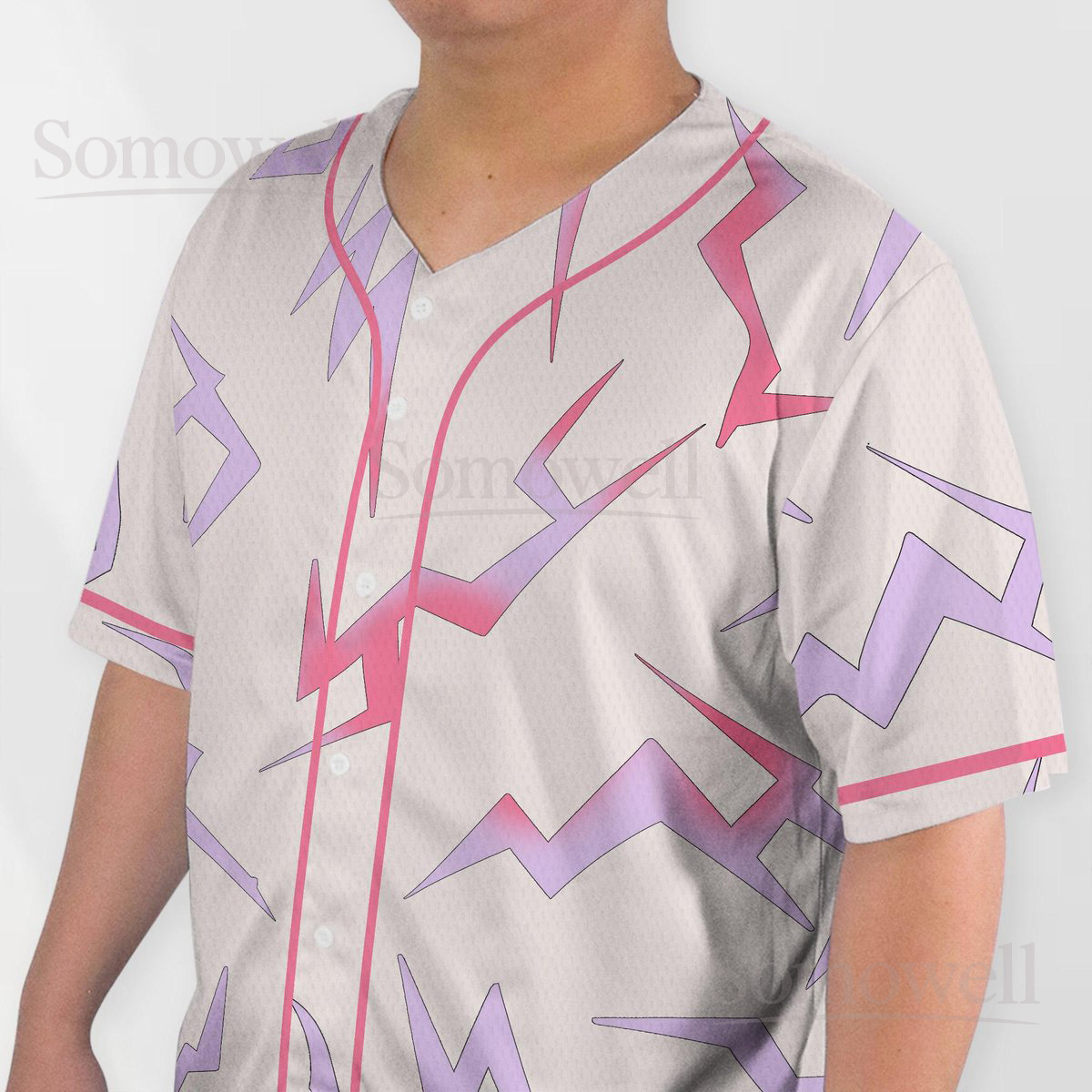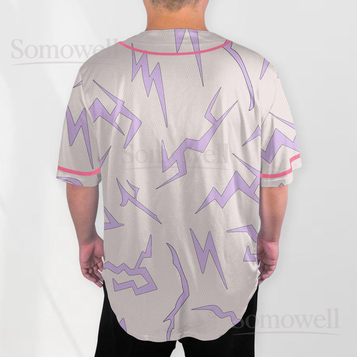 Custom Rumi Baseball Jersey Shirt for Anime and Streetwear Fans White and Pink Lightning Pattern Gift Apparel