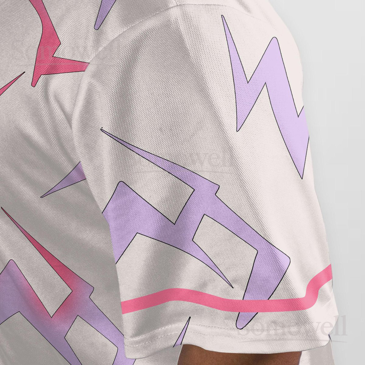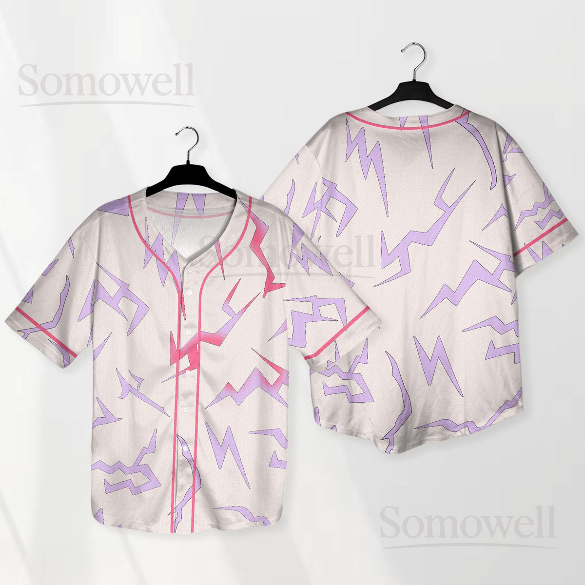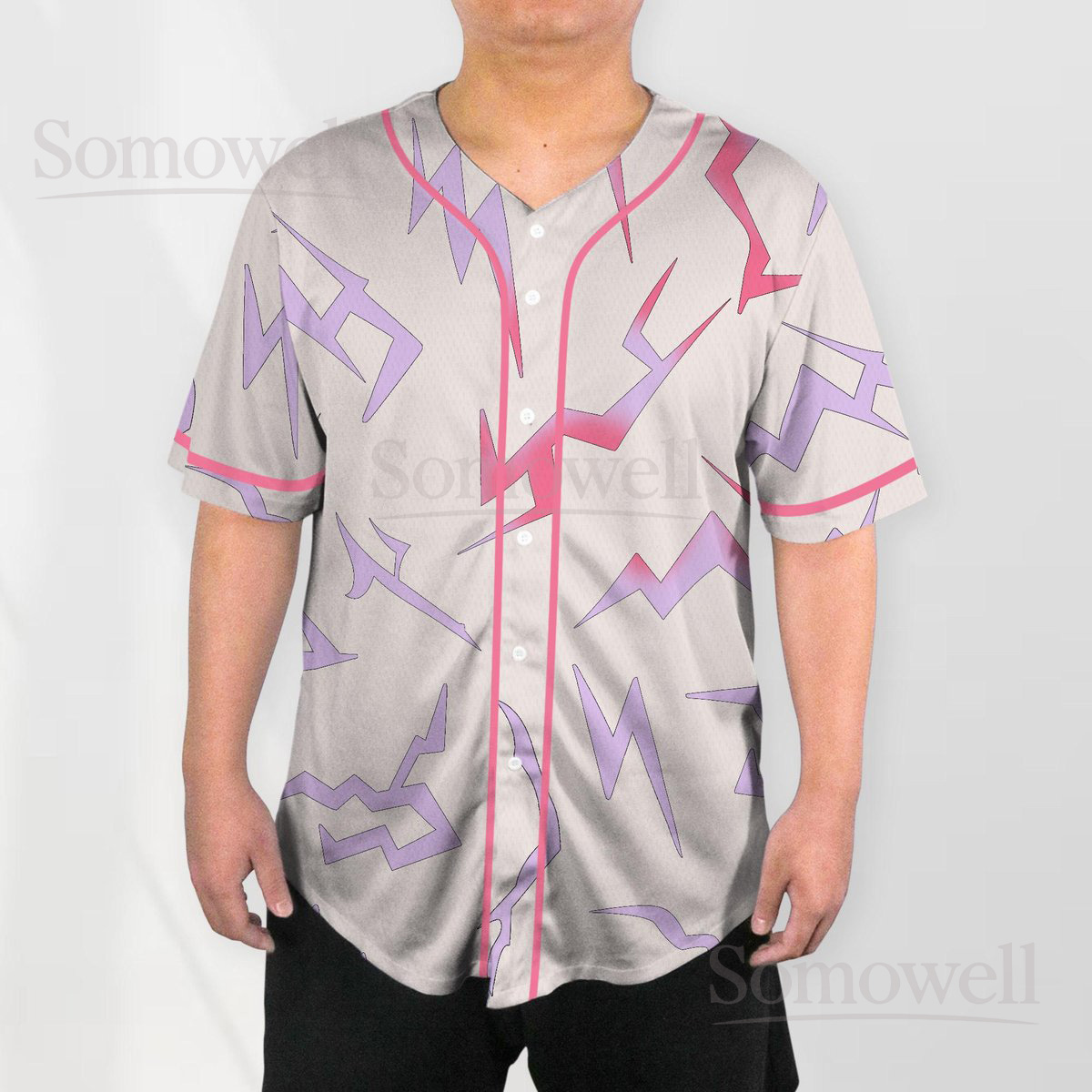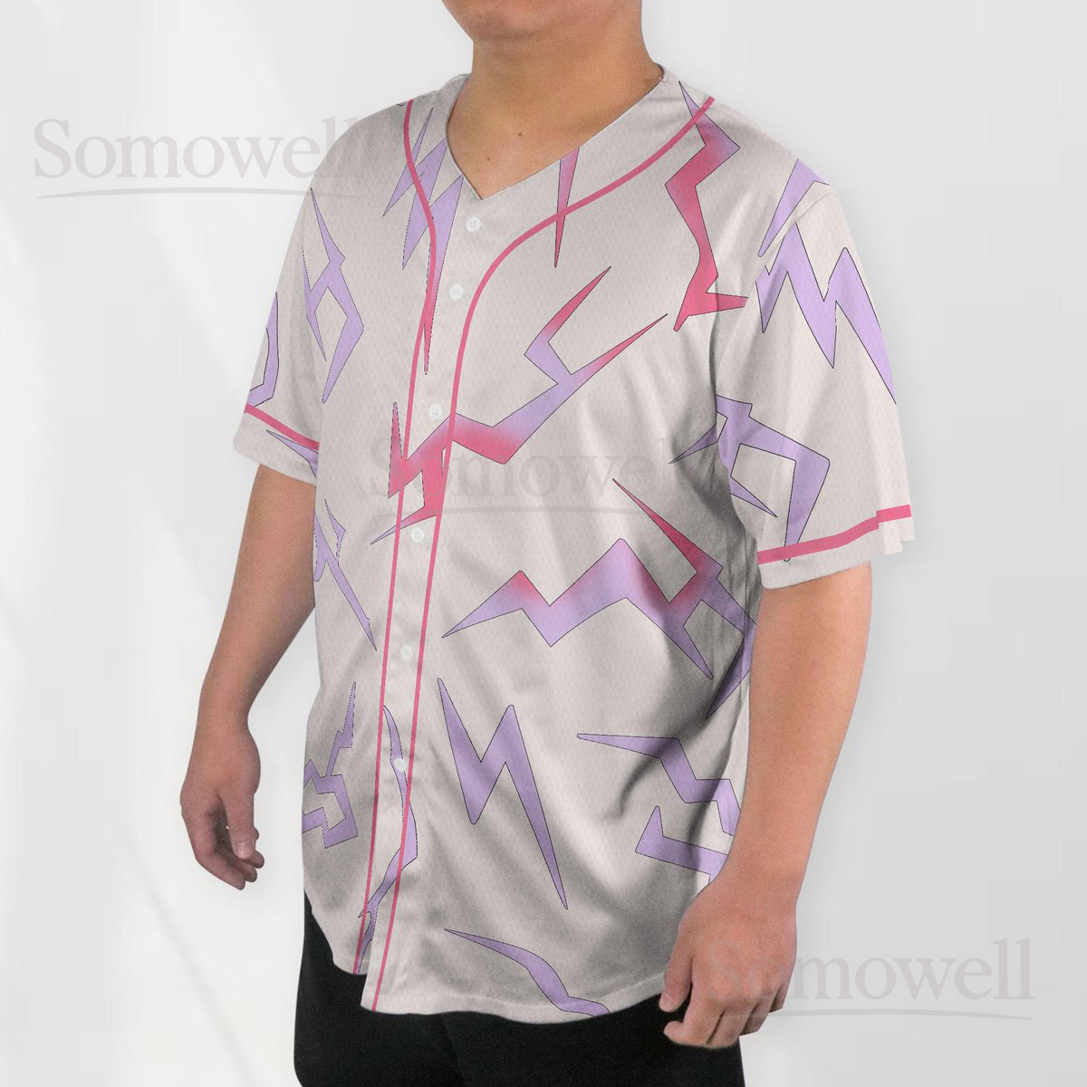 Custom Rumi Baseball Jersey Shirt for Anime and Streetwear Fans White and Pink Lightning Pattern Gift Apparel