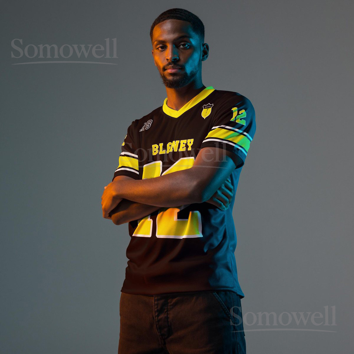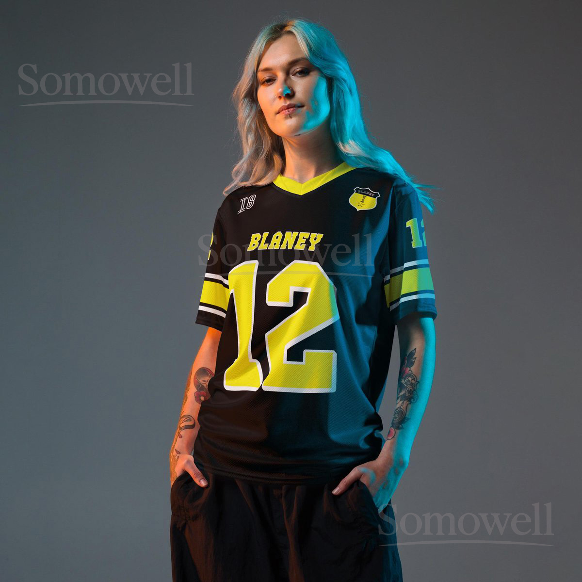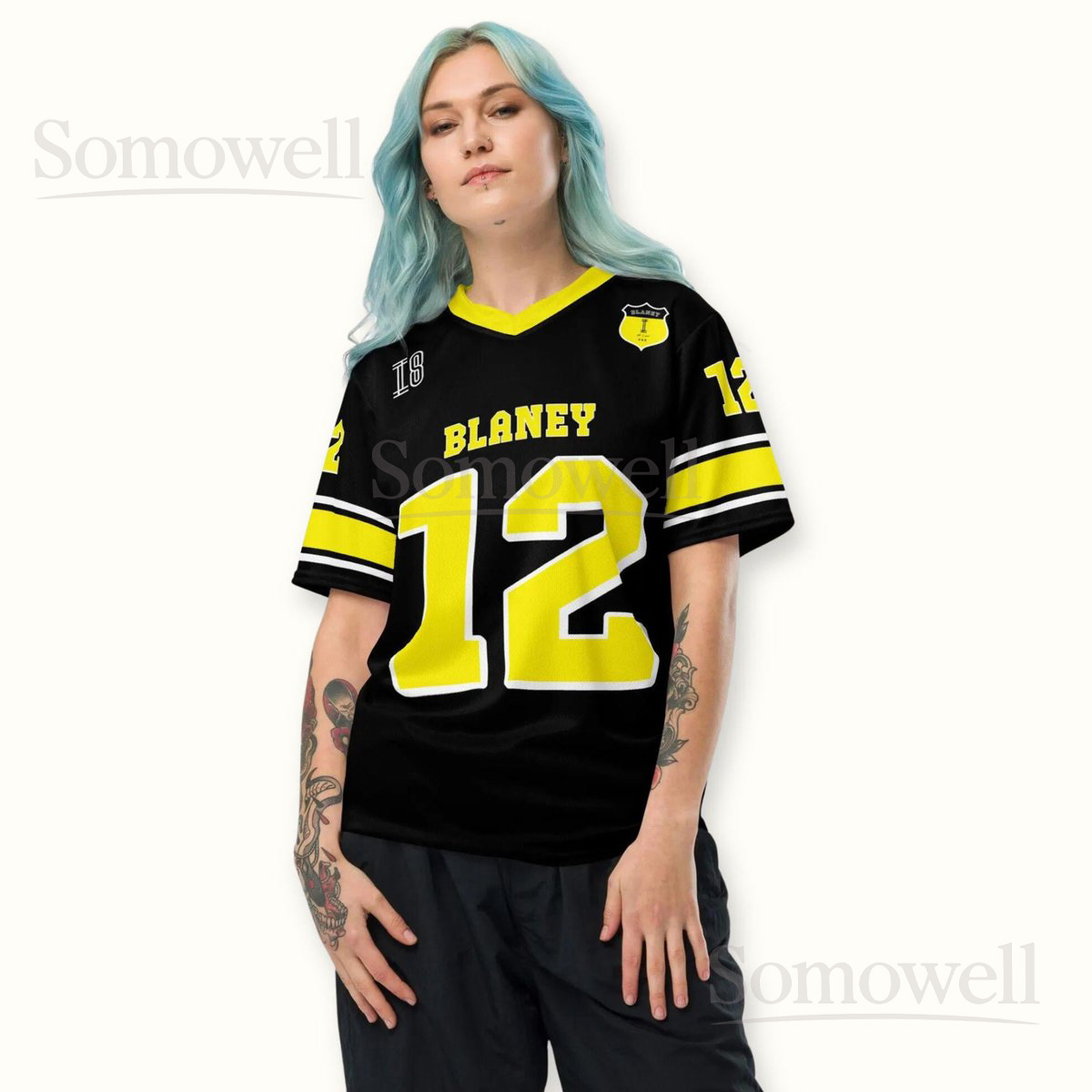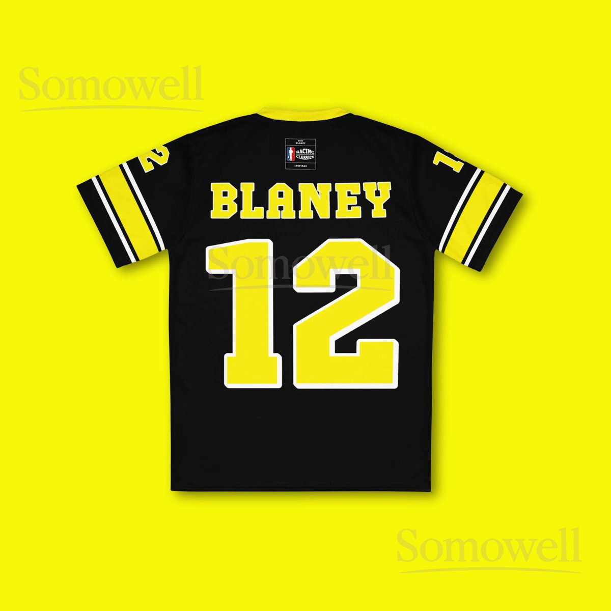 Custom Ryan Blaney NASCAR Football Jersey Shirt for Racing Fans Black and Yellow Team Penske Number 12 Motorsports Apparel