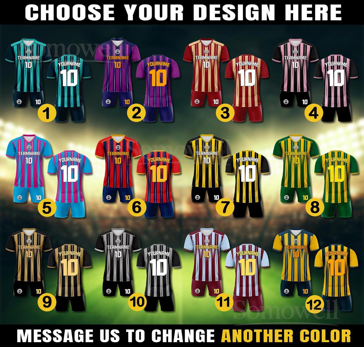 Custom Soccer Jersey and Shorts Set for Men Women and Youth with Team Name and Number in Multiple Colors