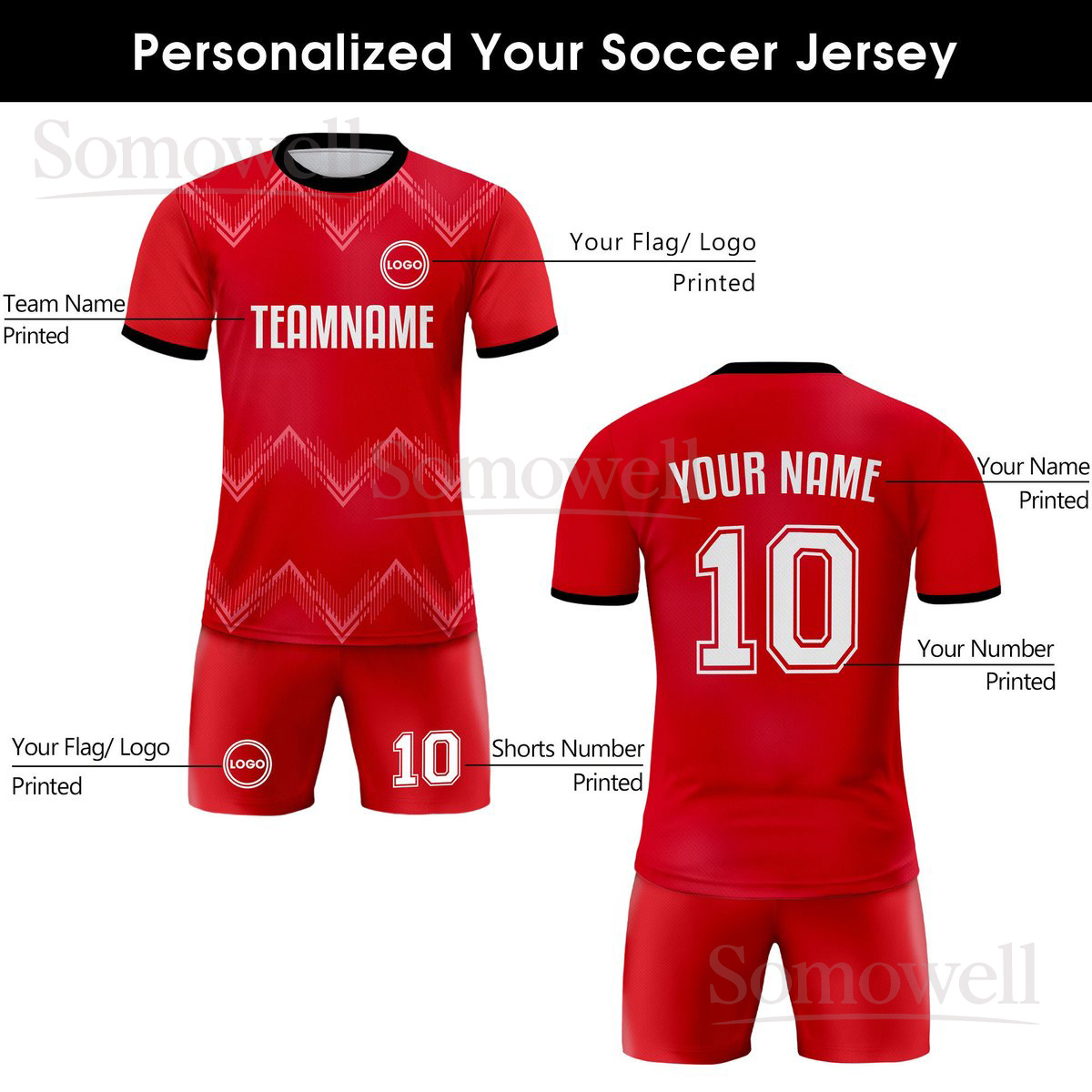 Custom Soccer Jersey for Men, Women, Youth, and Kids with Personalized Team Name and Number