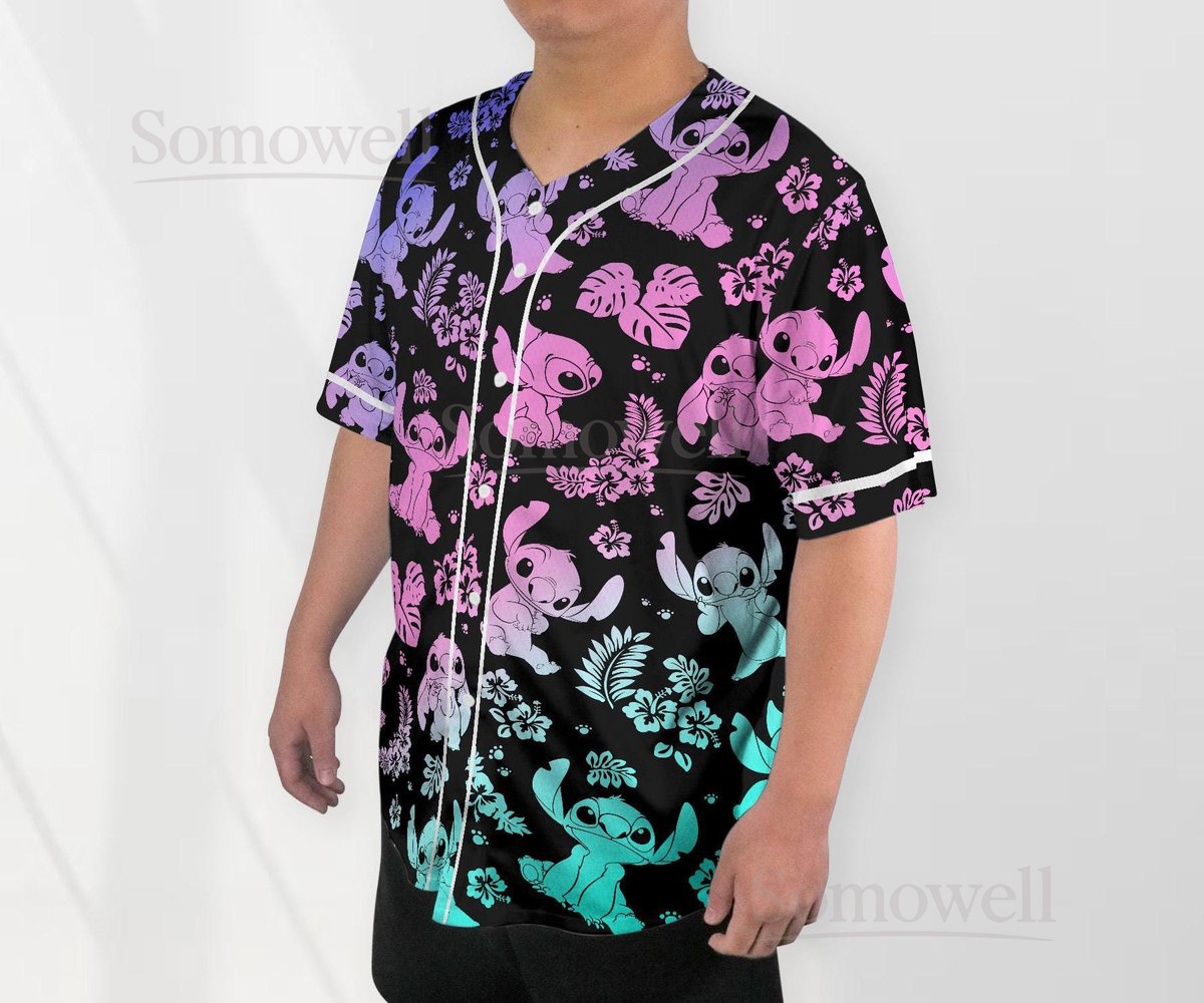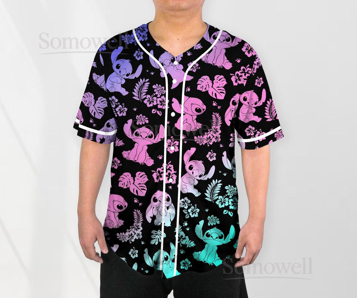 Custom Stitch Baseball Jersey Shirt for Fans, Cute Stitch Cartoon with Bright Colors