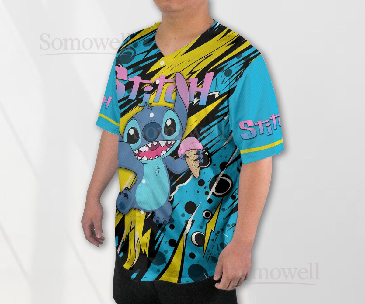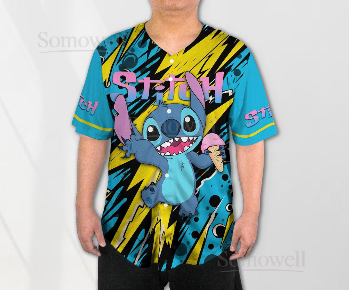 Custom Stitch Baseball Jersey Cute Stitch Design, Personalized for Birthday Gift with Team Name and Number