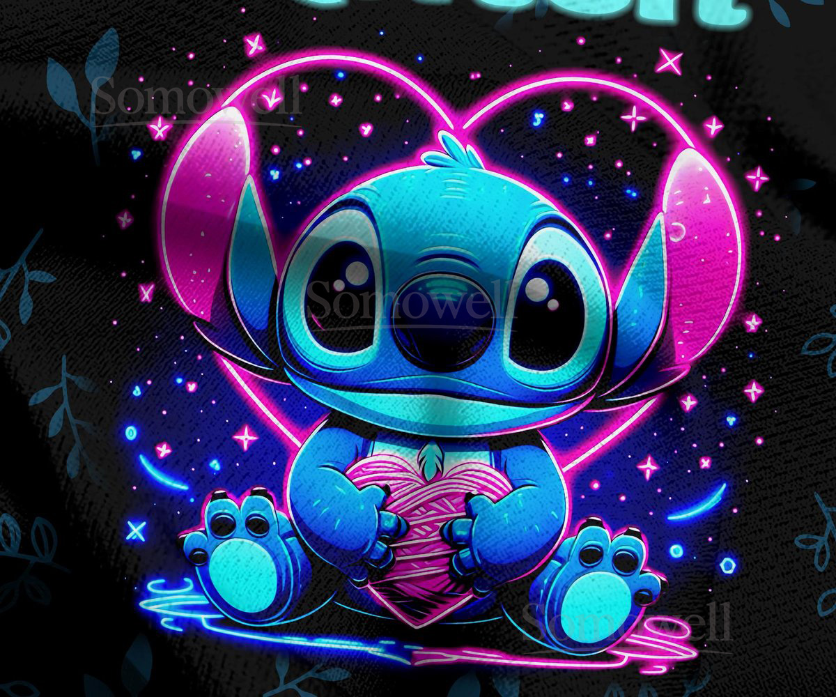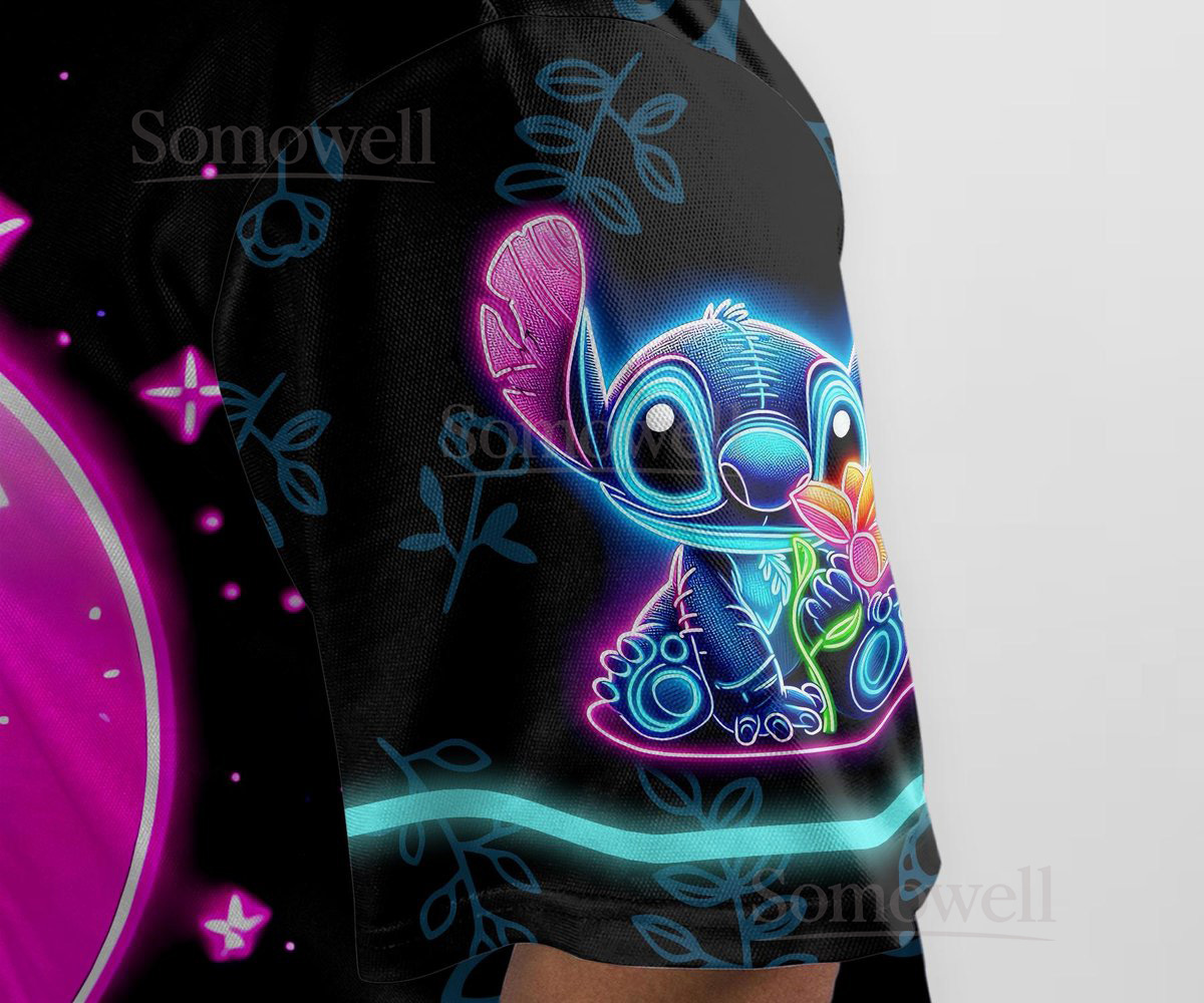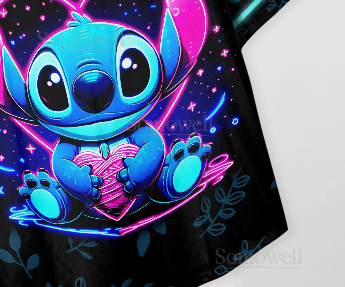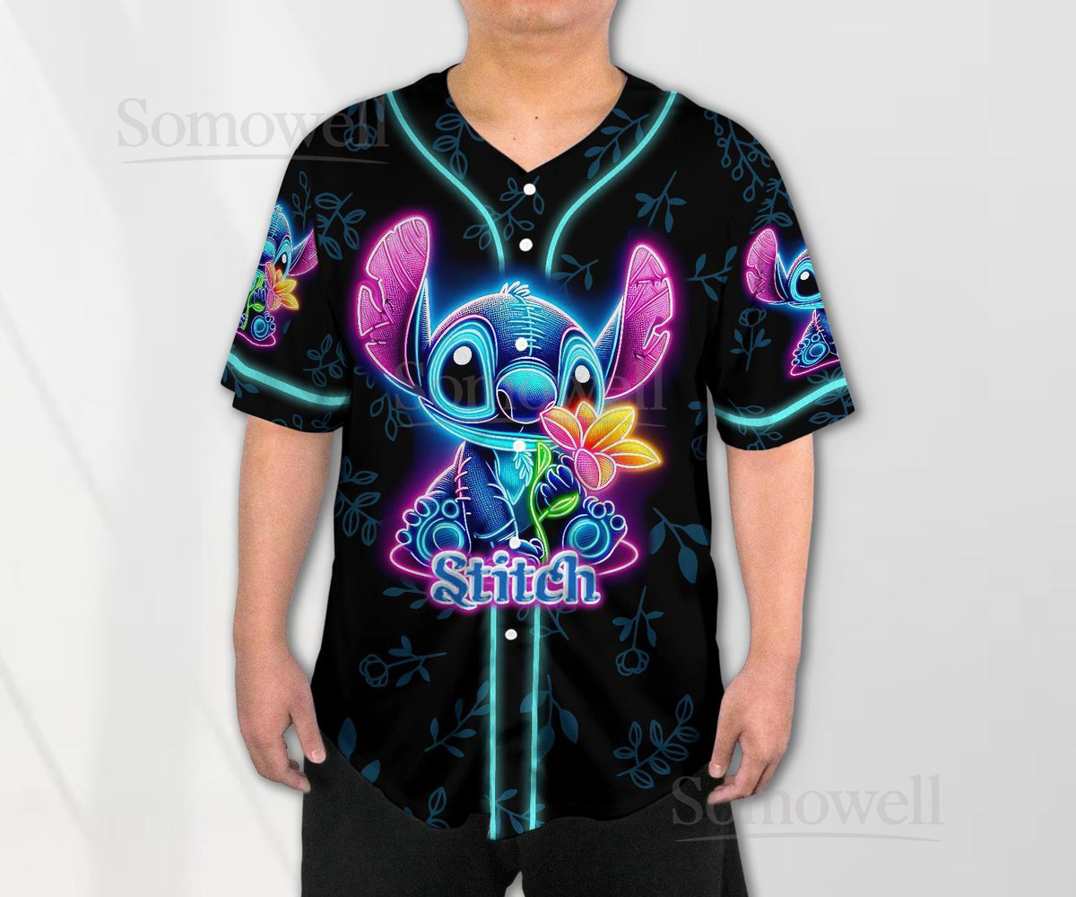 Custom Stitch Neon Baseball Jersey Shirt for Disney Fans Black Glow in the Dark Cute Cartoon Gift Apparel