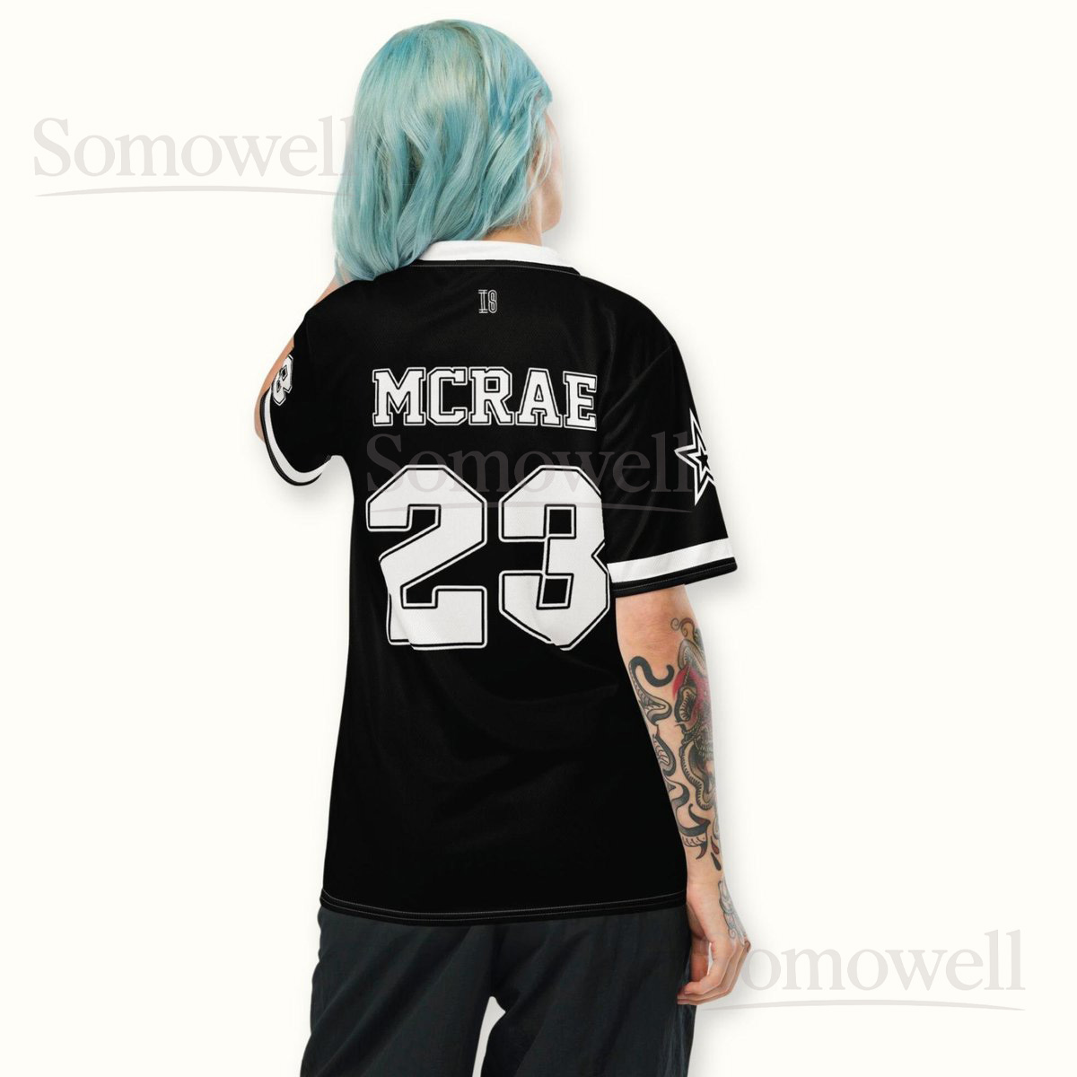 Custom Tate McRae T8 Football Jersey Shirt for Music Fans Red and Black Concert Merchandise Fan Apparel