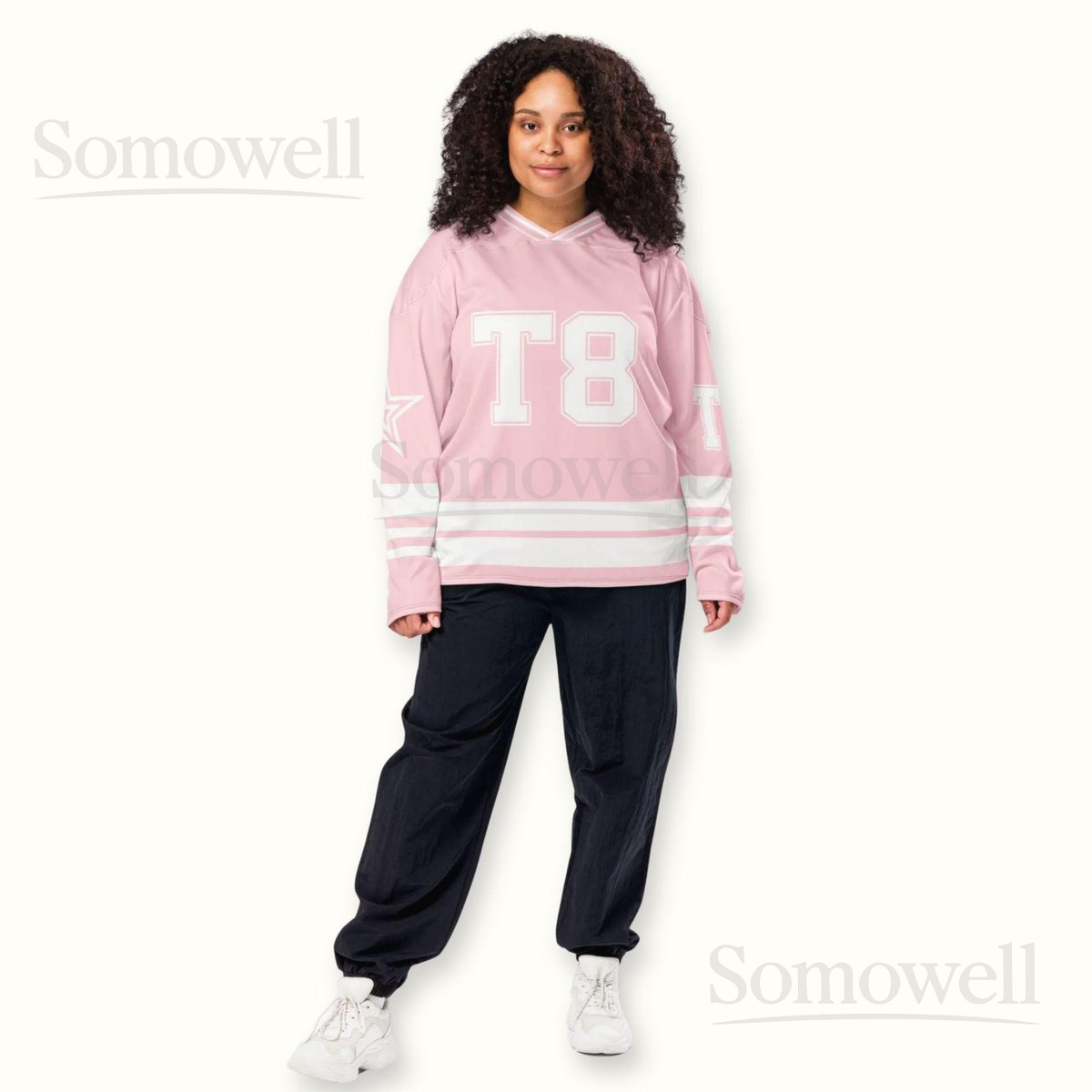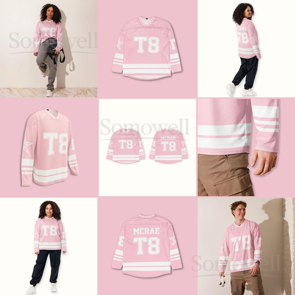 Custom Tate McRae T8 Pink Hockey Jersey Shirt for Concert Fans Stylish Music Tour Inspired Outfit and Gift Apparel