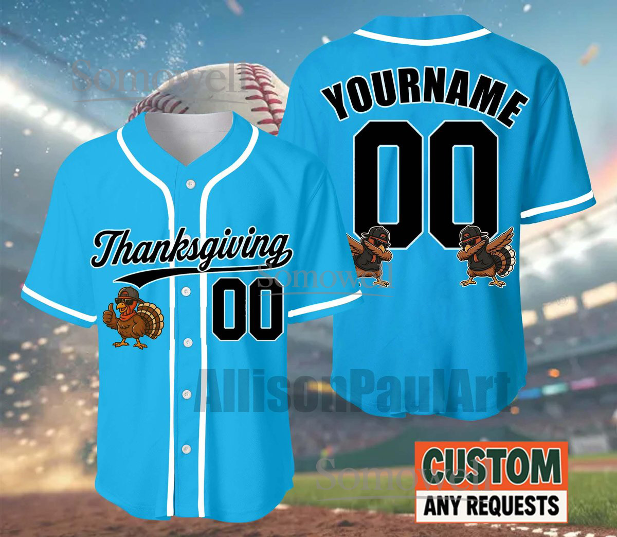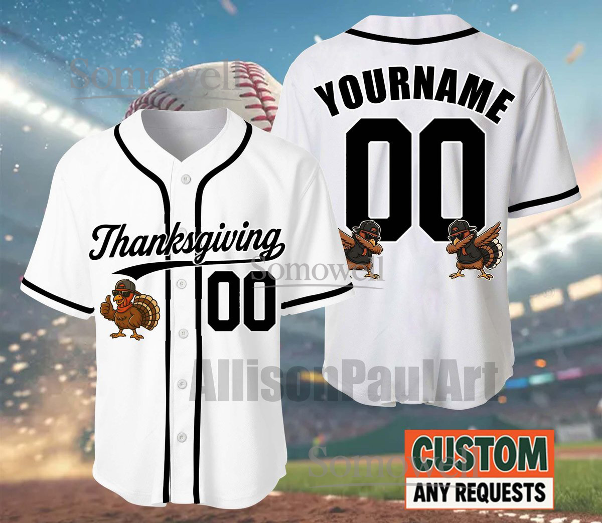 Custom Thanksgiving Baseball Jersey Turkey Cartoon Design Personalized Name and Number Edition