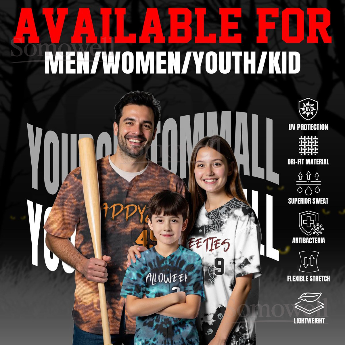 Custom Tie Dye Halloween Baseball Jersey for Men Women Youth Kid Personalized Name Number Spooky Theme Multi Color Edition