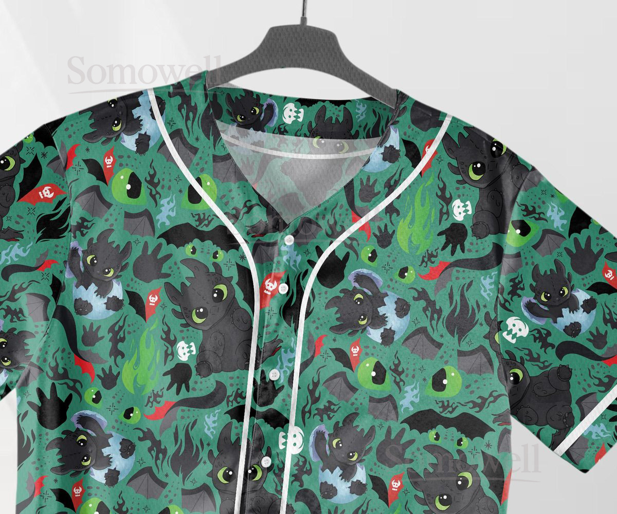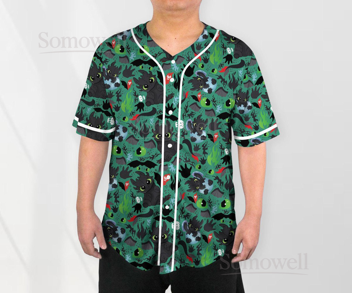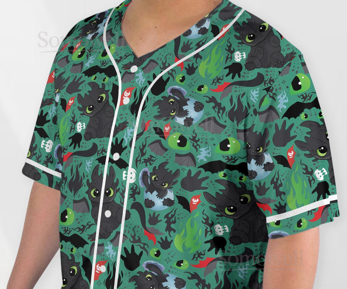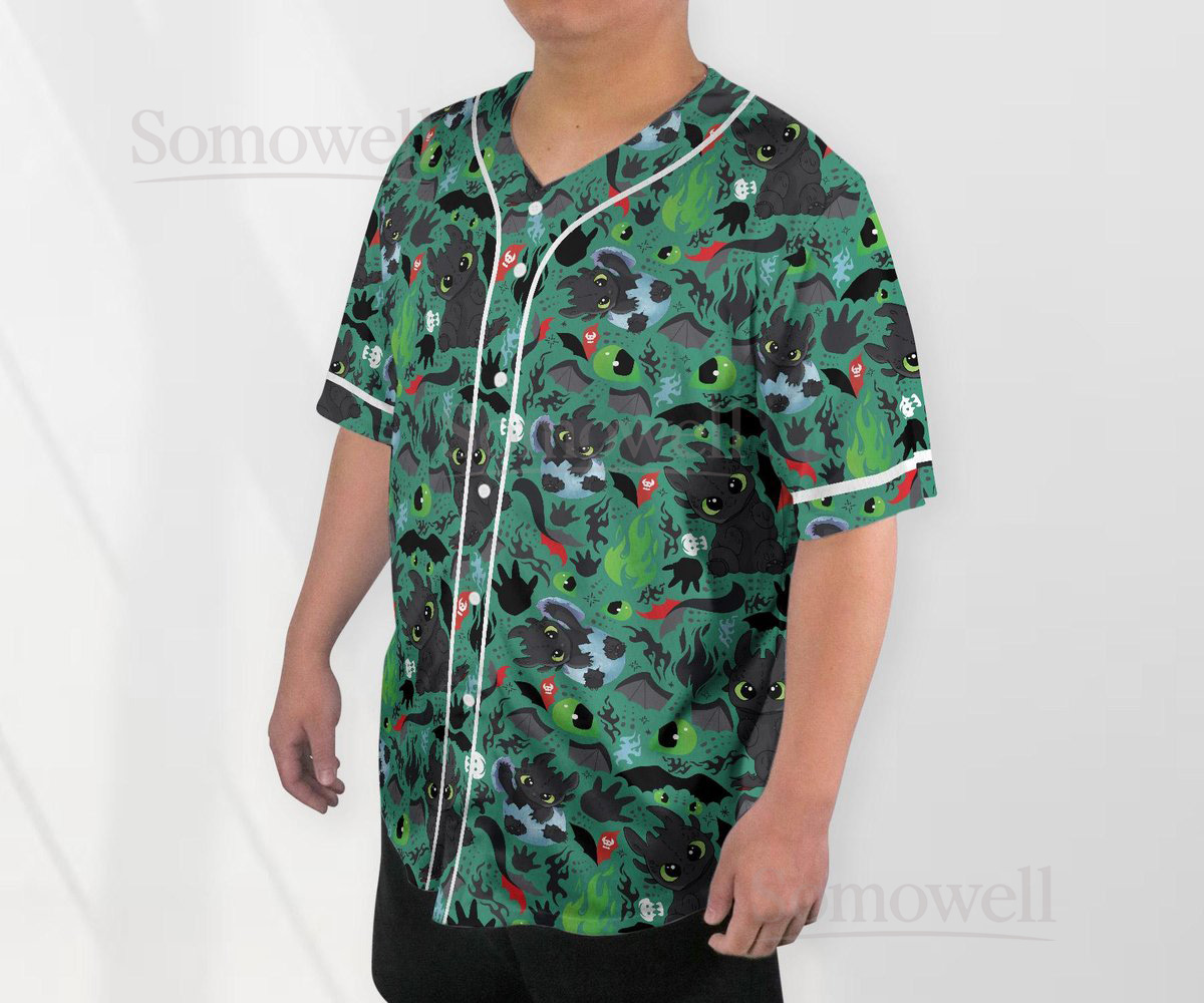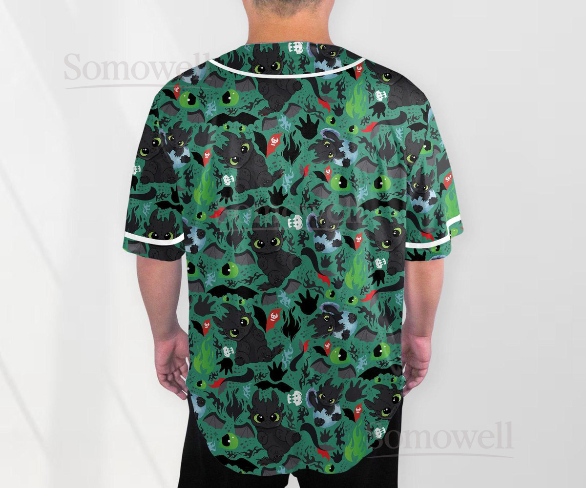 Custom Toothless Baseball Jersey Shirt for Dragon Lovers Black and Green Fantasy Cartoon Dragon Pattern Gift Apparel
