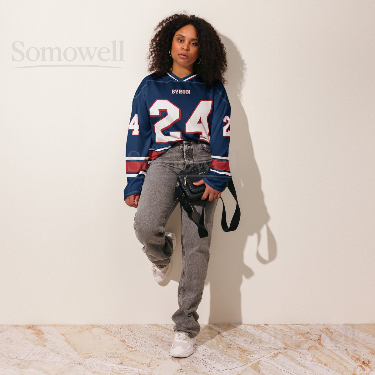 Custom William Byron NASCAR Hockey Jersey Shirt for Racing Fans Navy Blue and Red Number 24 Motorsports Team Sweatshirt