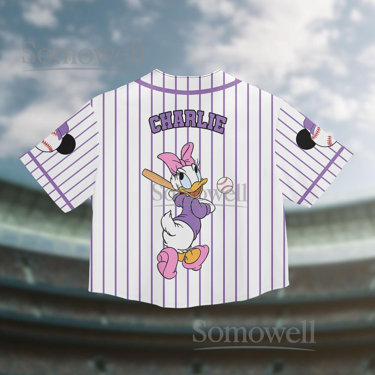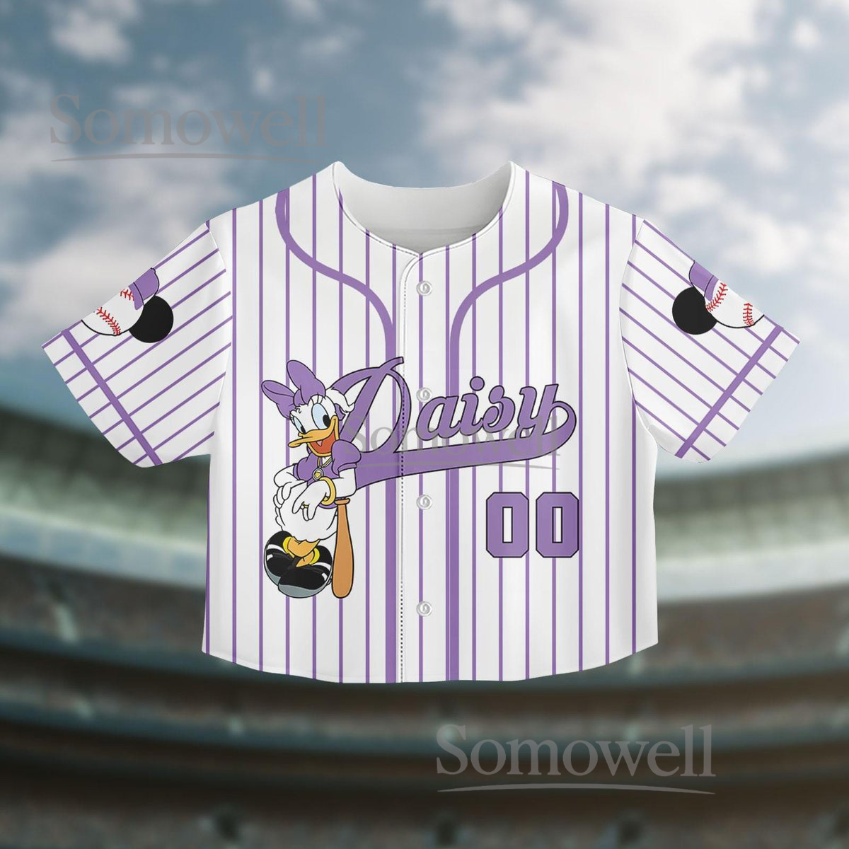 Daisy Duck Baseball Jersey Shirt Purple White Striped Cute Cartoon Crop Top Gift
