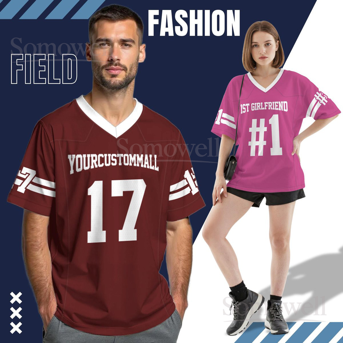 Customized Football Jersey for Men Women Youth Kids Personalized Team Name Number Shirt Multi Color Edition