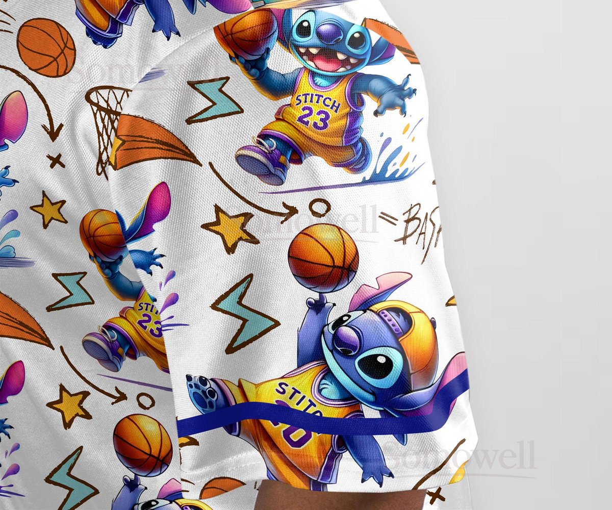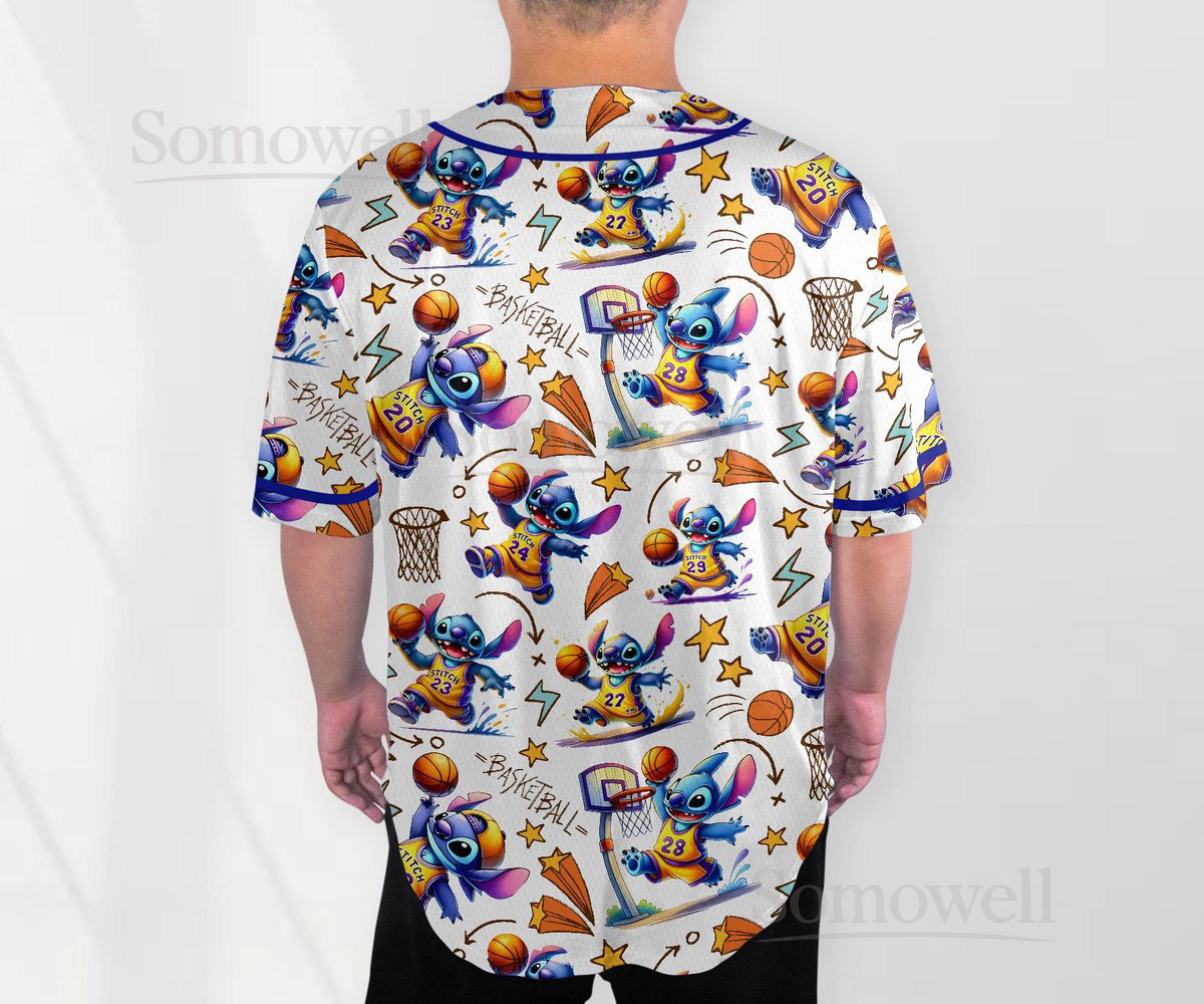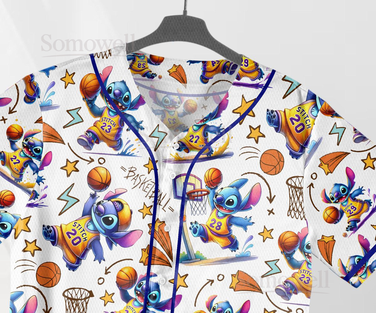 Funny Stitch Basketball Jersey Shirt for Fans, Colorful Cartoon Stitch with Basketball Theme