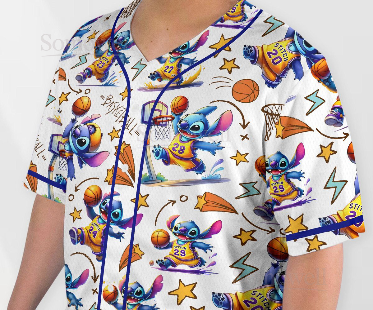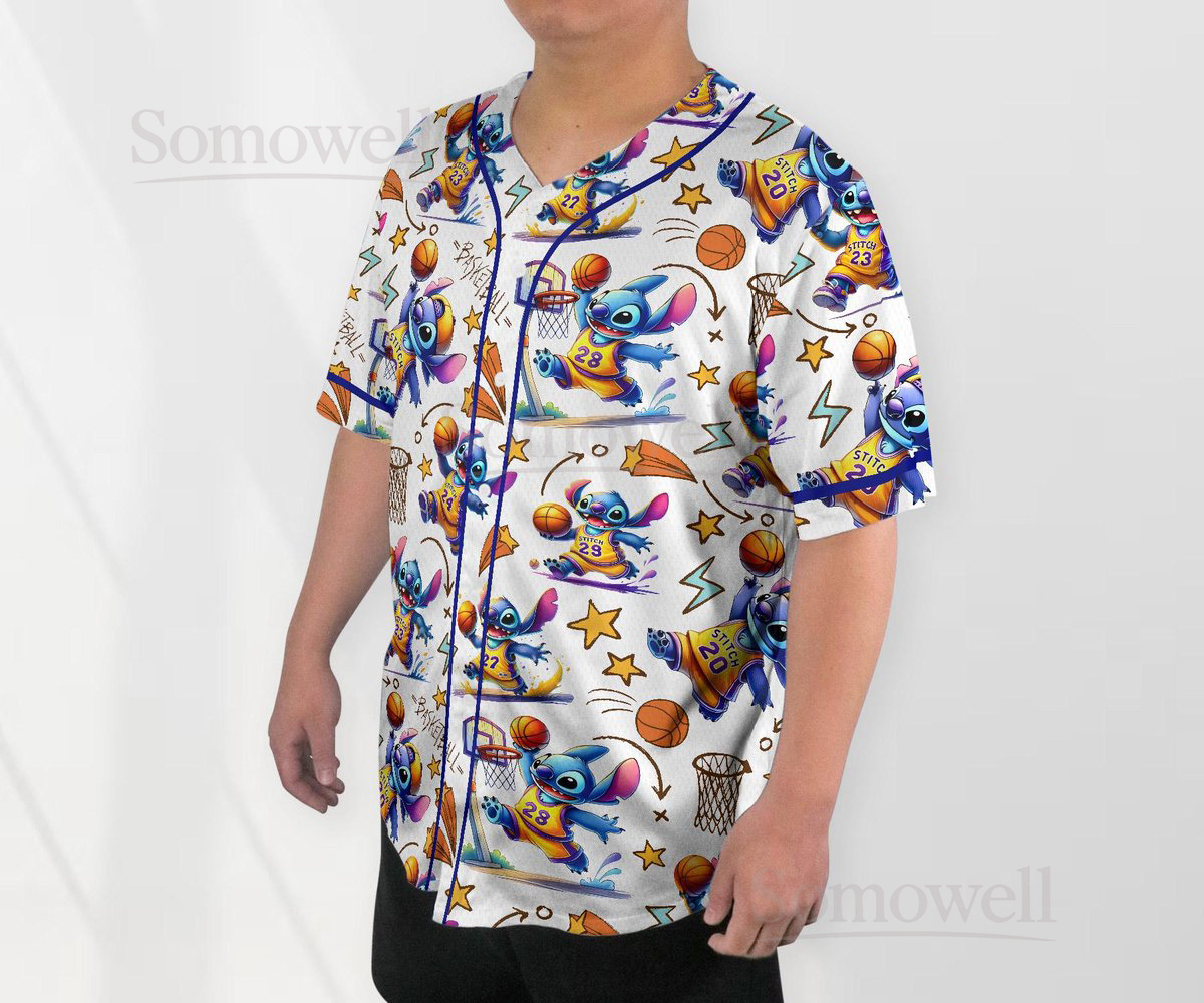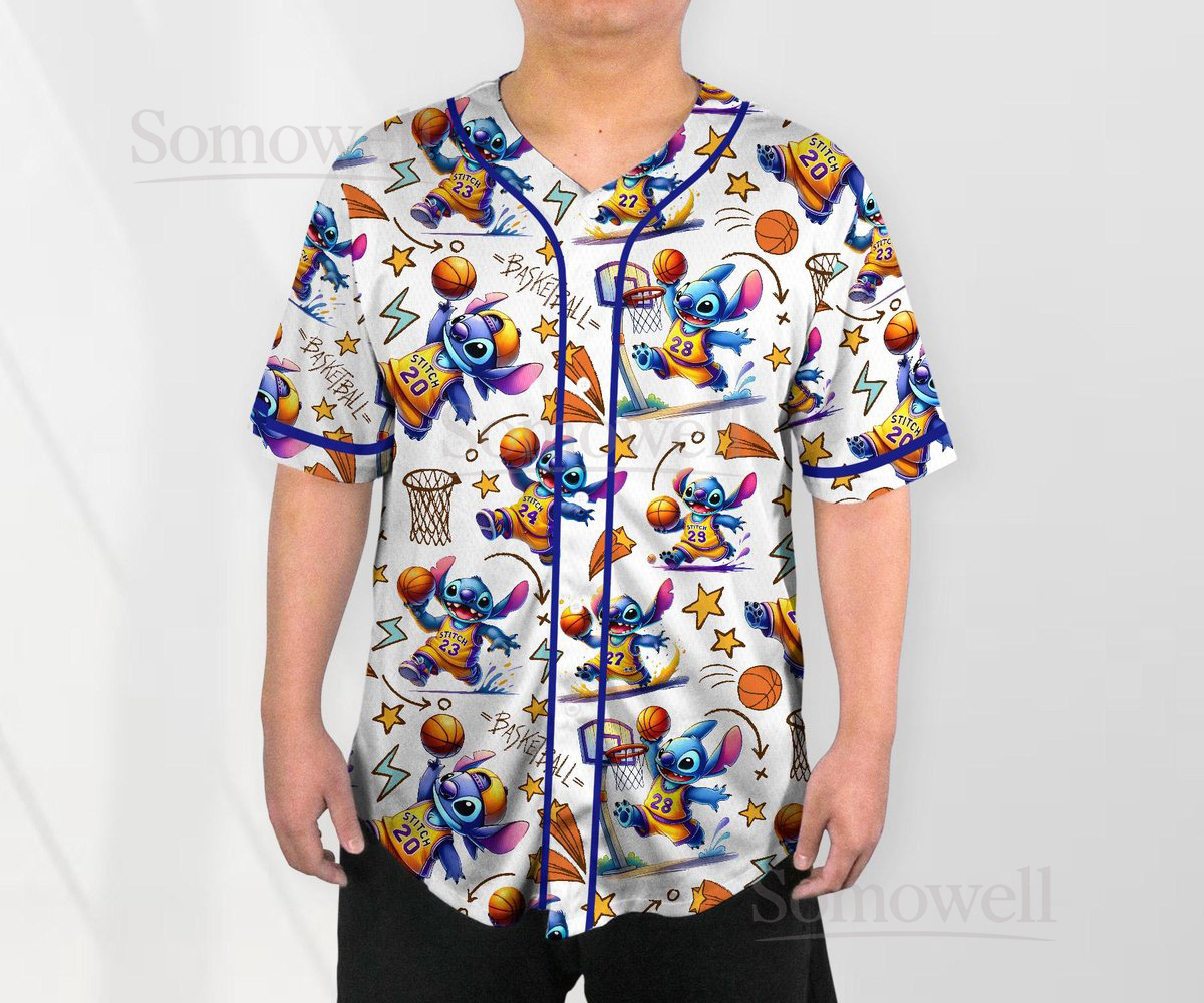 Funny Stitch Basketball Jersey Shirt for Fans, Colorful Cartoon Stitch with Basketball Theme