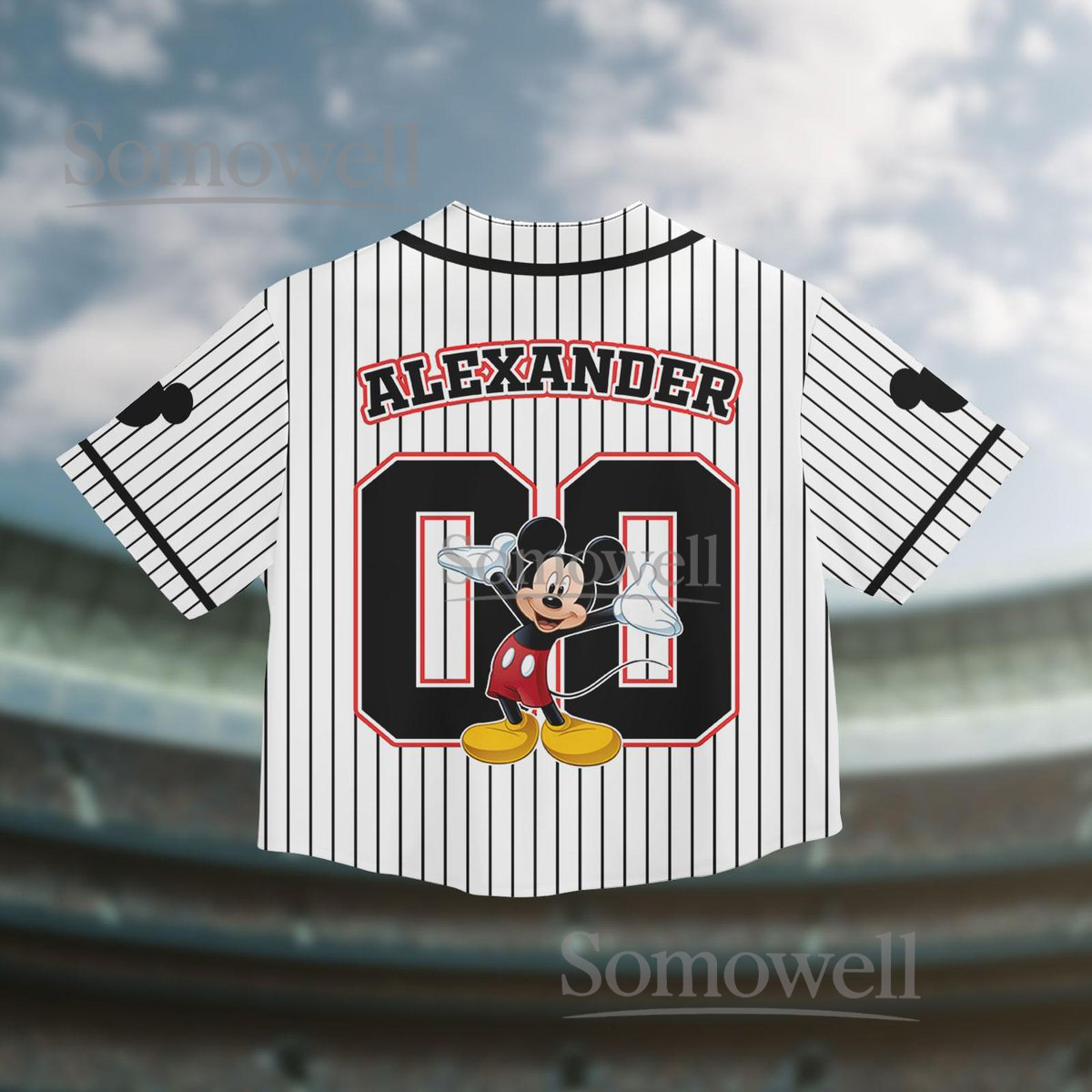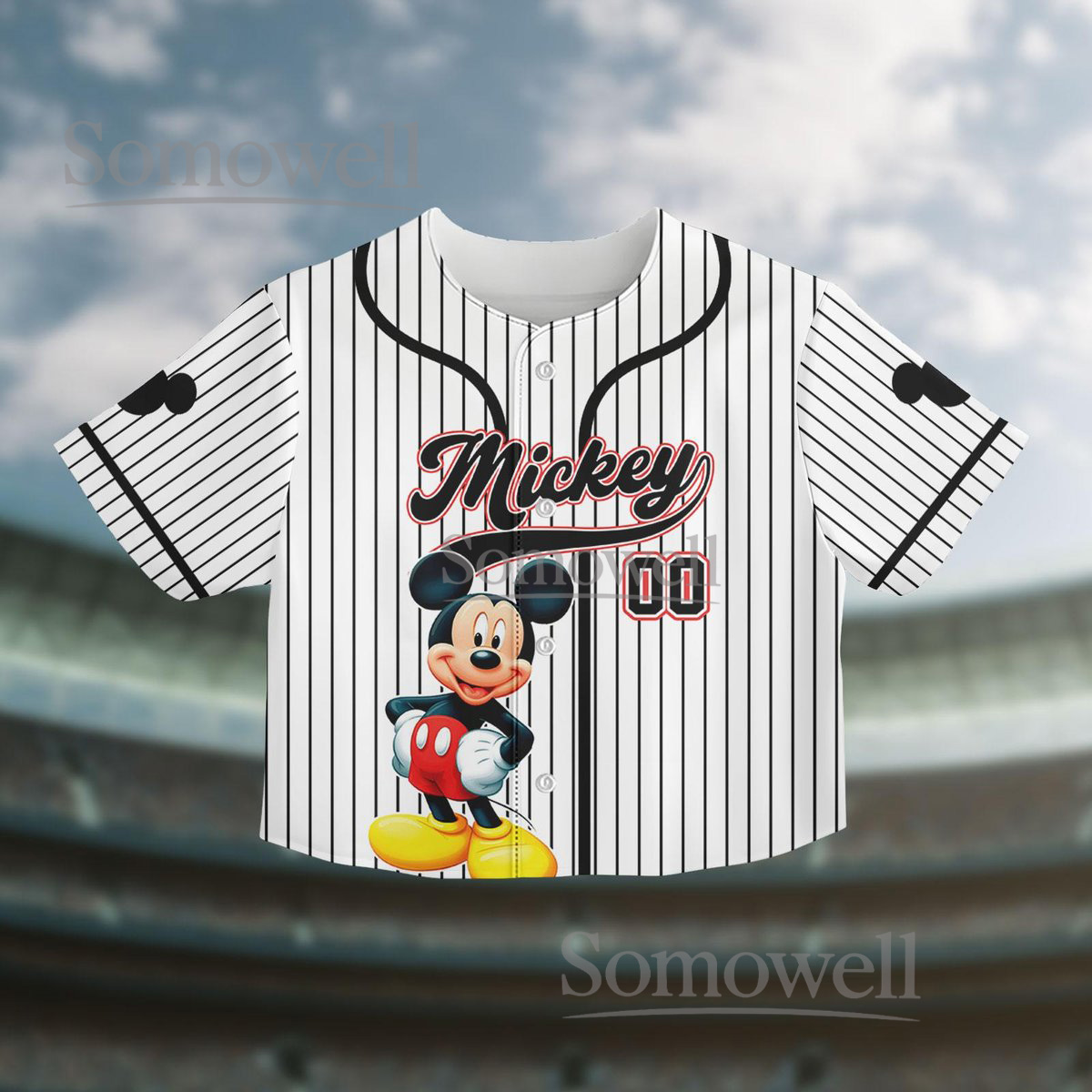 Mickey Mouse Baseball Jersey Shirt Classic Cartoon Character Black White Striped Personalized Gift