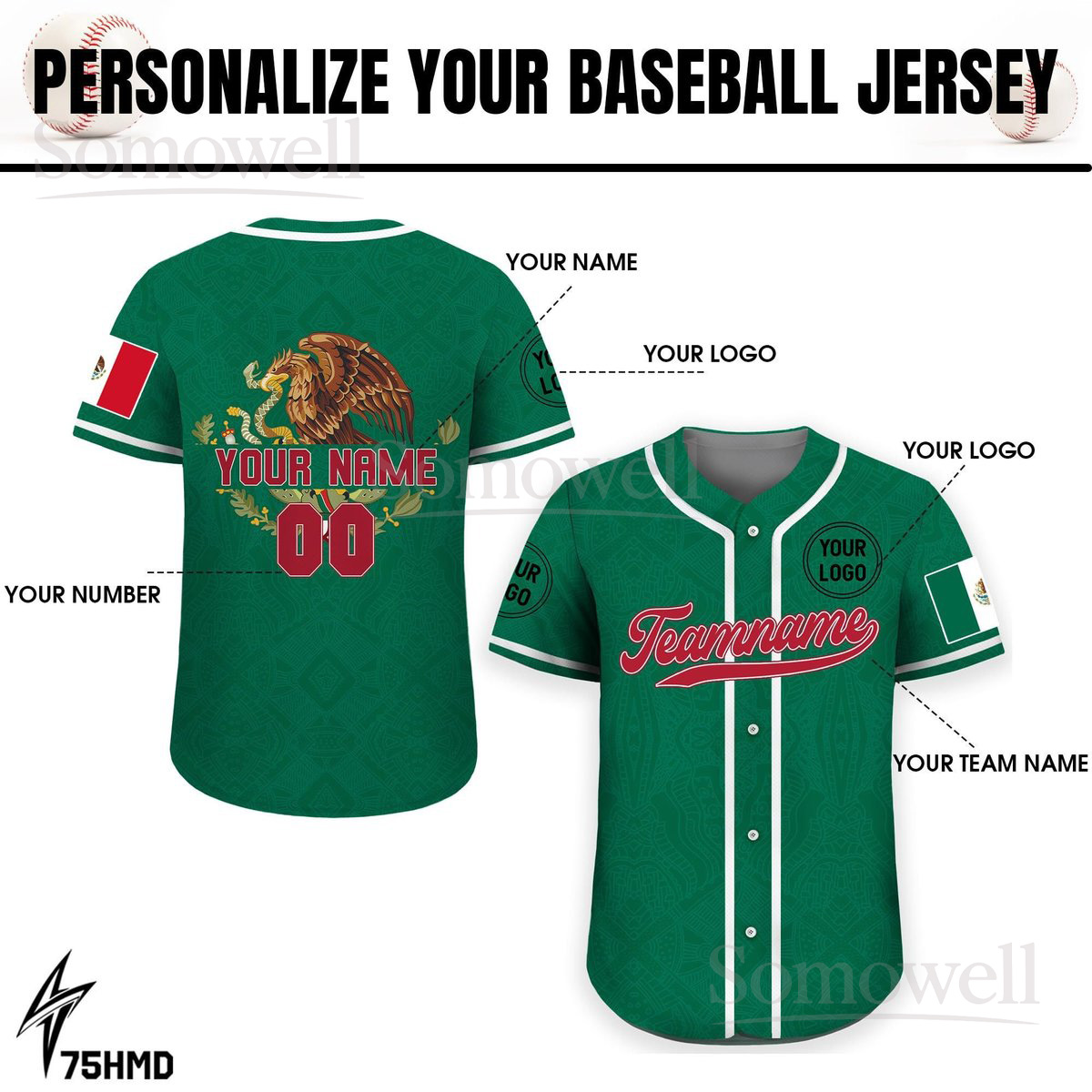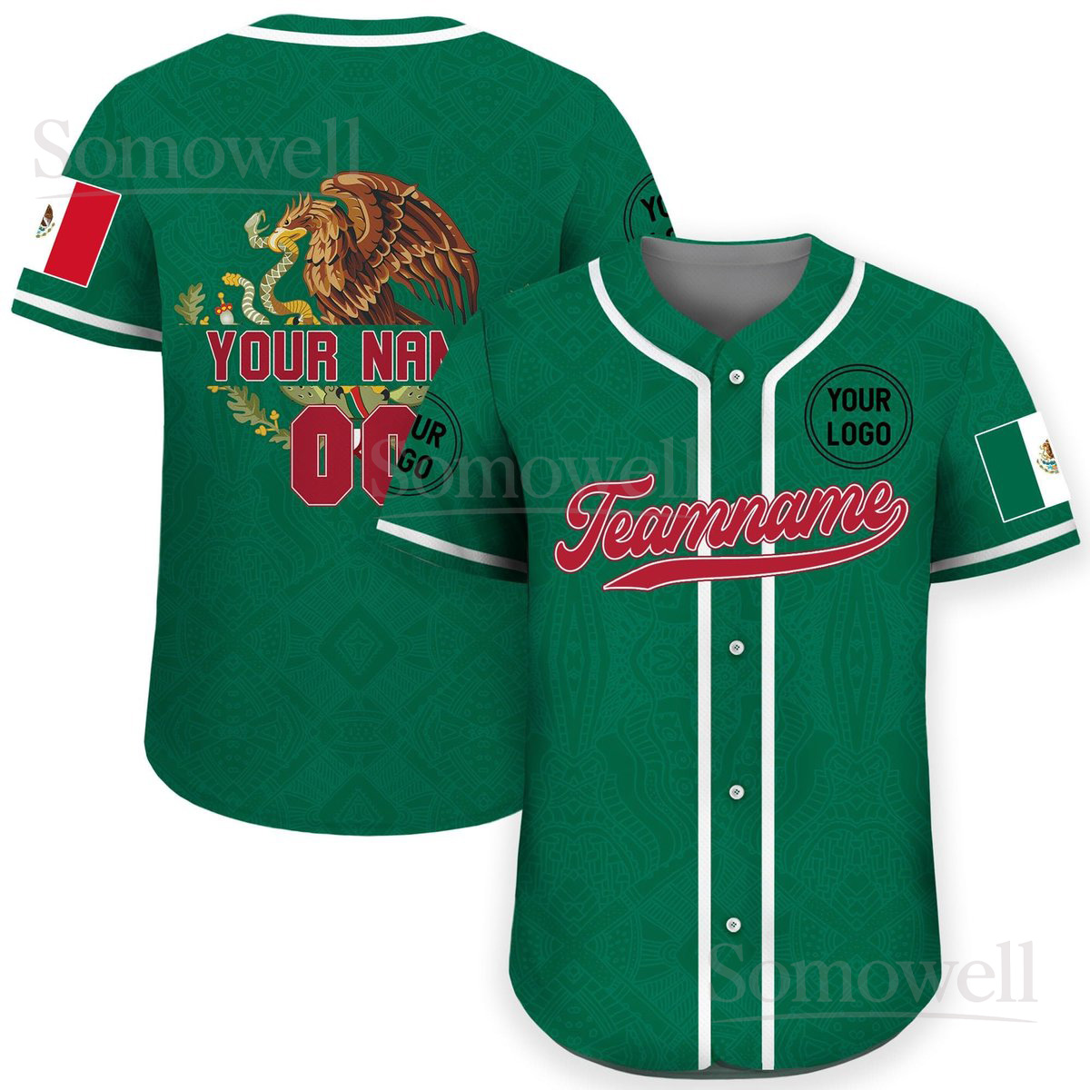 Personalization Mexico Baseball Jersey with Custom Team Name Number Multi Color Edition