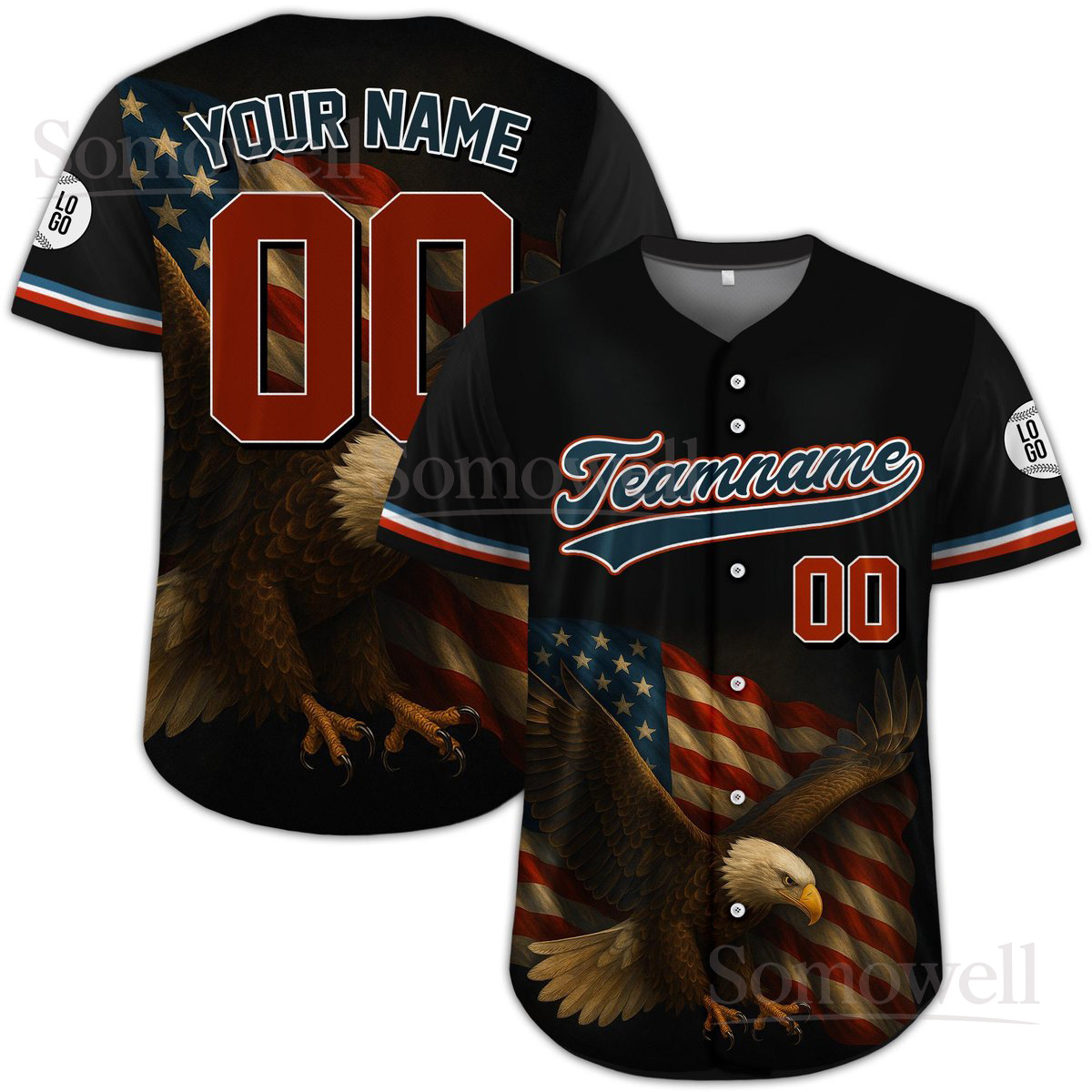 Personalized American Eagle Baseball Jersey Custom Team Name and Number Patriotic Sports Shirt for Men Women and Youth