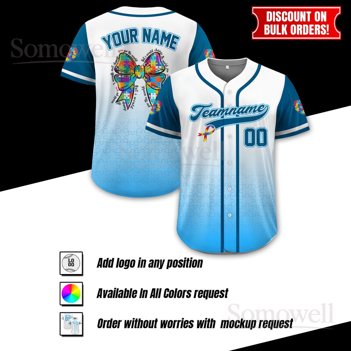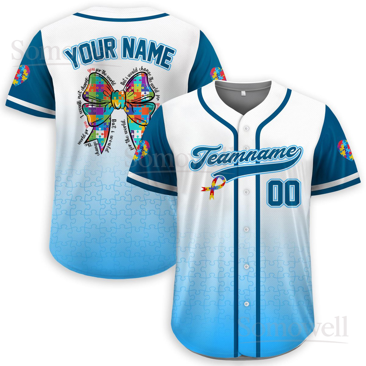 Personalized Autism Awareness Baseball Jersey Many Colors Custom Puzzle Pattern Team Shirt